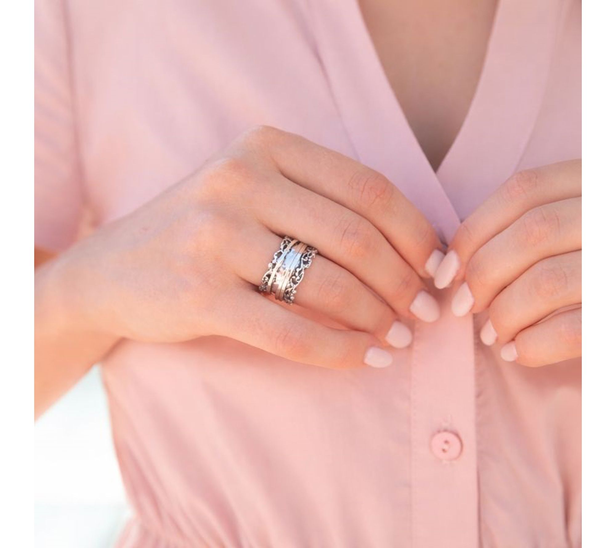 • Lace-inspired spinner design; polished and textured details; may be used as a fidget ring