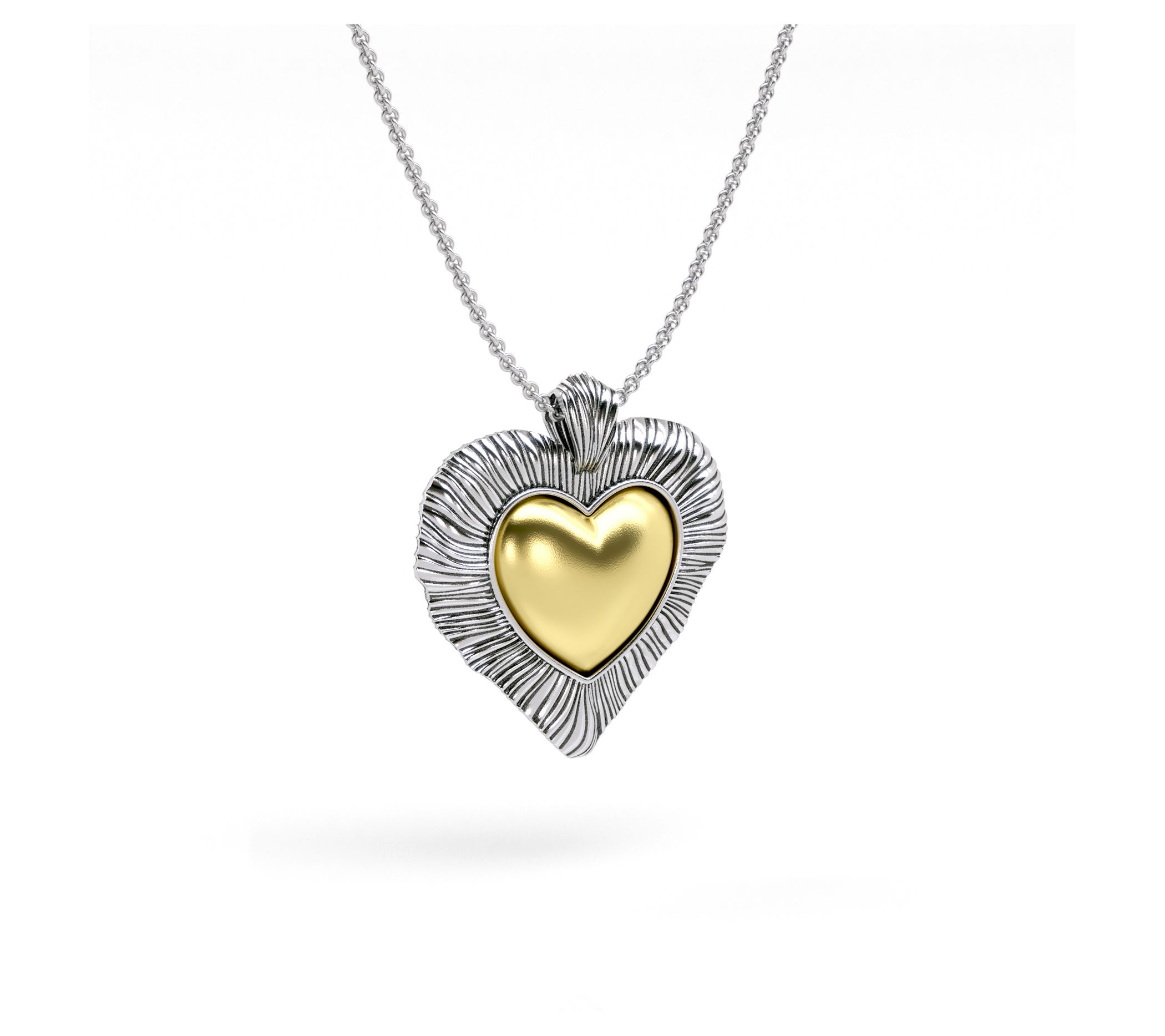• Textured heart pendant; rolo link chain