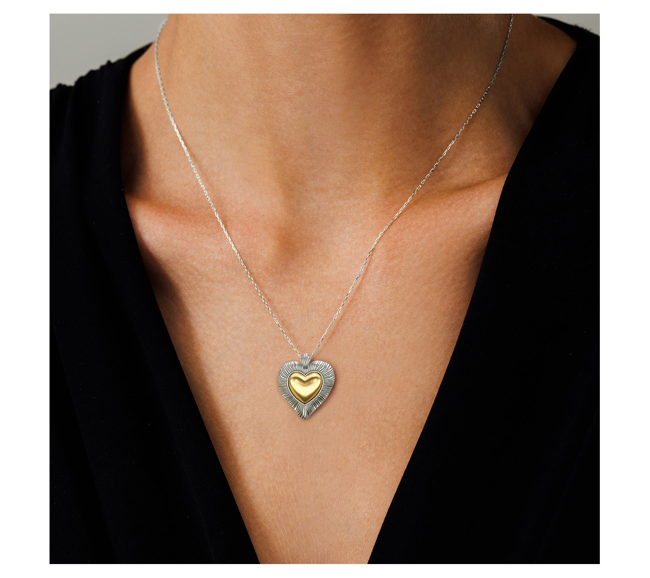 Embrace elegance with the Or Paz sterling silver textured heart pendant necklace. This exquisite piece features a beautifully crafted heart pendant on a rolo link chain, perfect for adding a touch of sophistication to any outfit. Available in both sterling silver and a two-tone 14K yellow gold-plated sterling silver version. From Or Paz® Sterling Silver Jewelry.