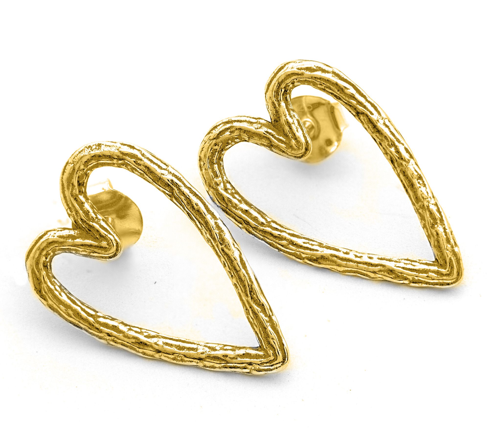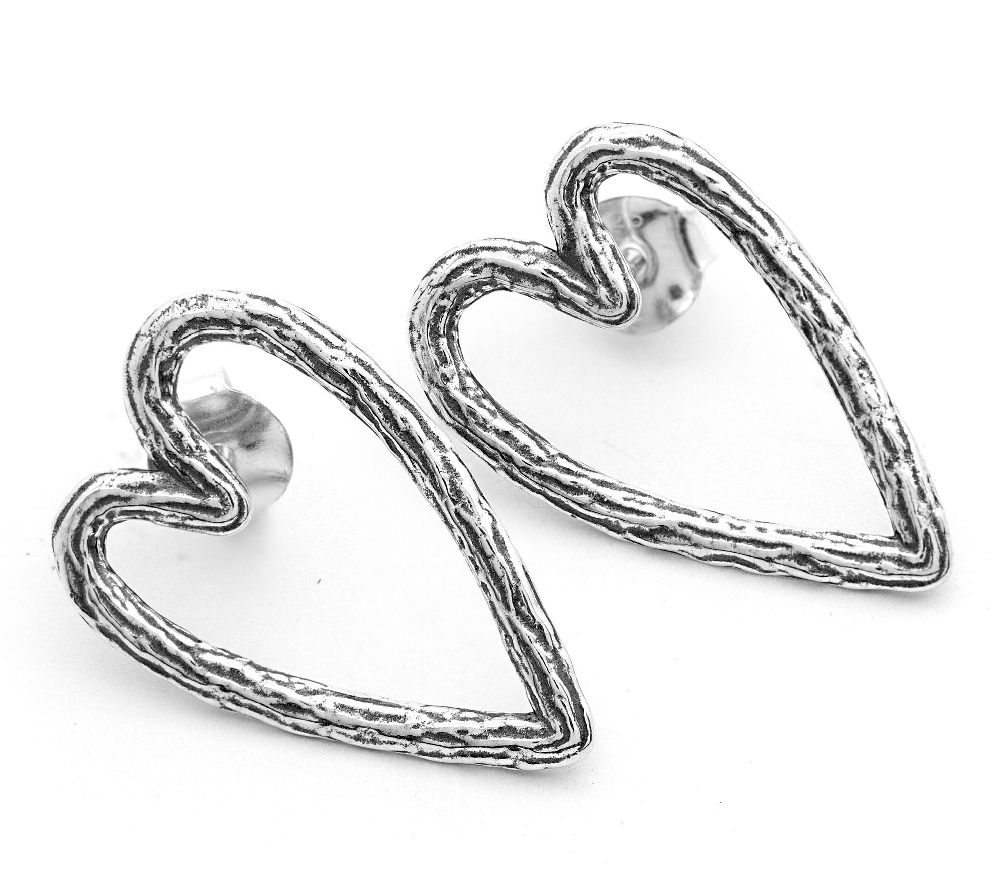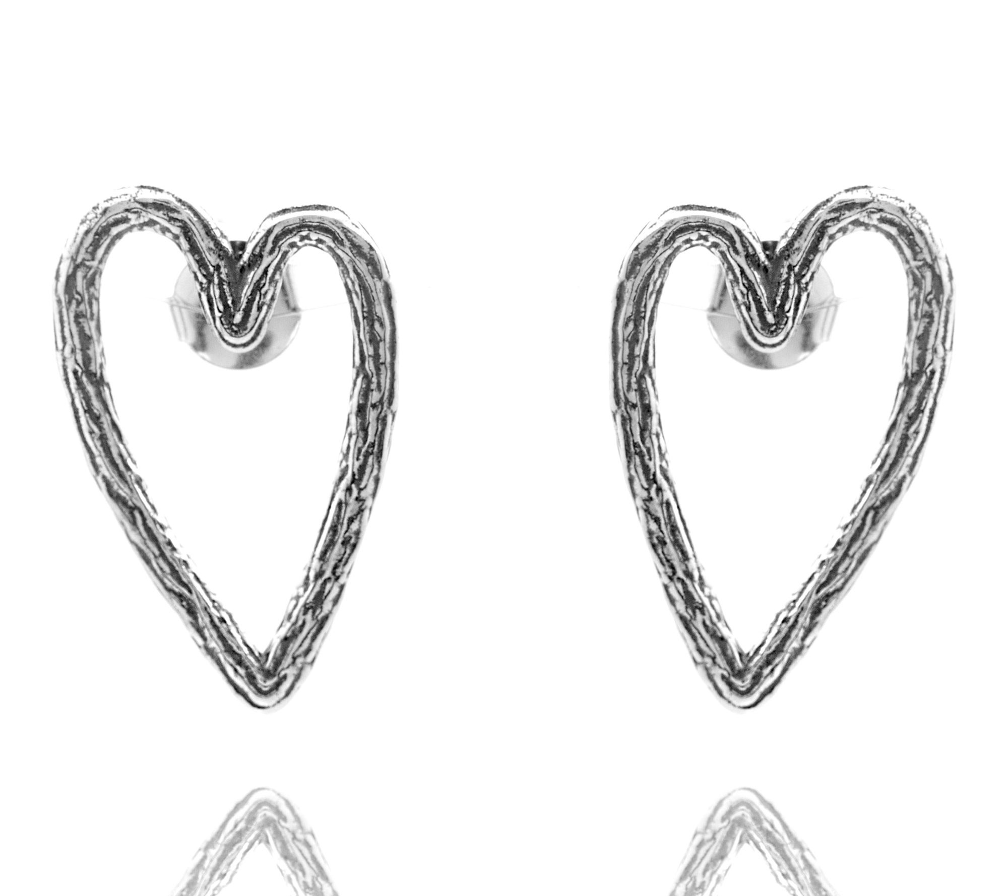 Or Paz Sterling Silver Vine Design Heart Stud Earrings