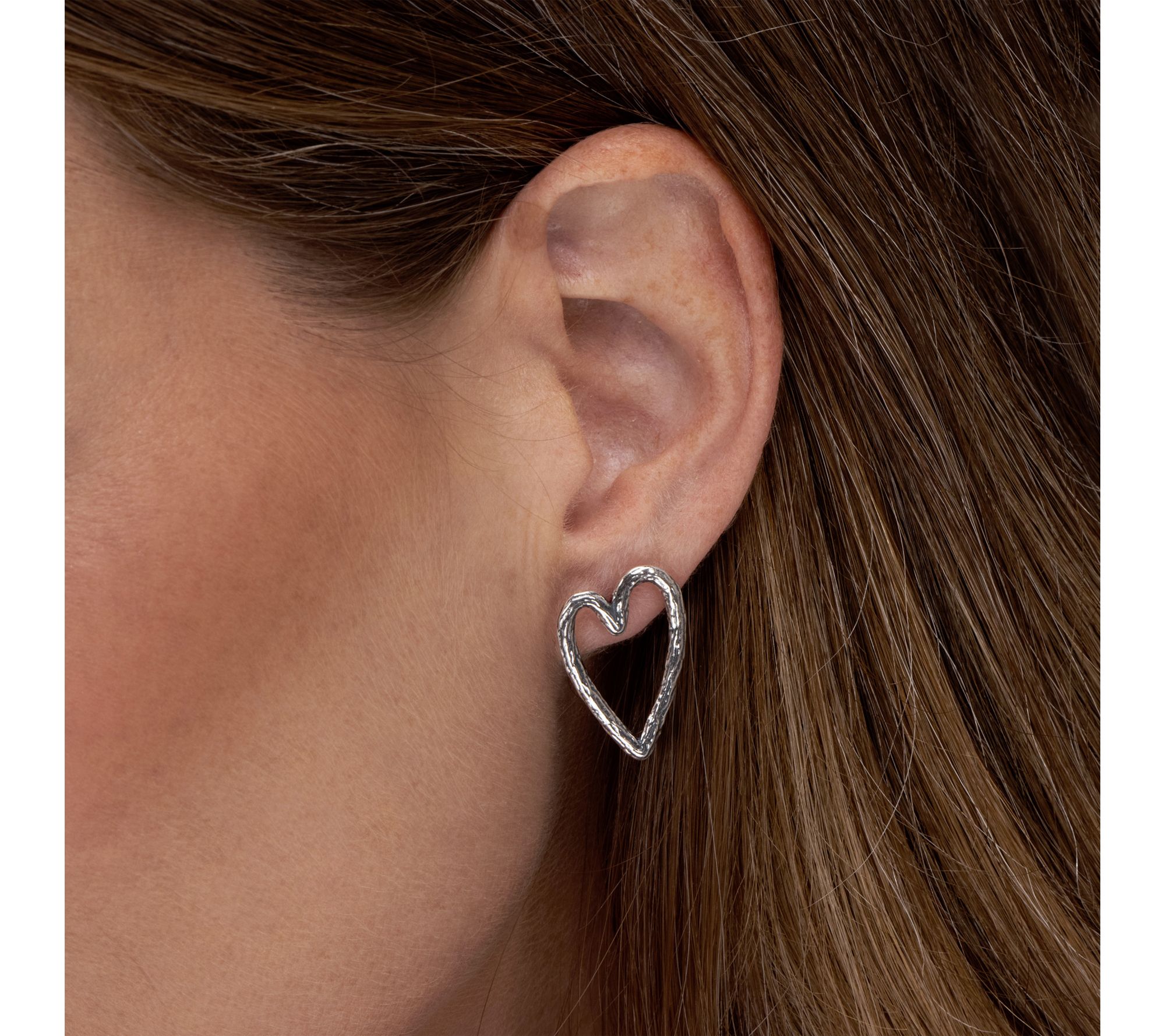 Romantic with a touch of nature's inspiration, these heart stud earrings delight with their graceful vine motif, capturing the spirit of organic elegance. Whether you're headed to brunch or dressing up for date night, these earrings offer a versatile way to add thoughtful charm to your look. From Or Paz® Sterling Silver Jewelry.