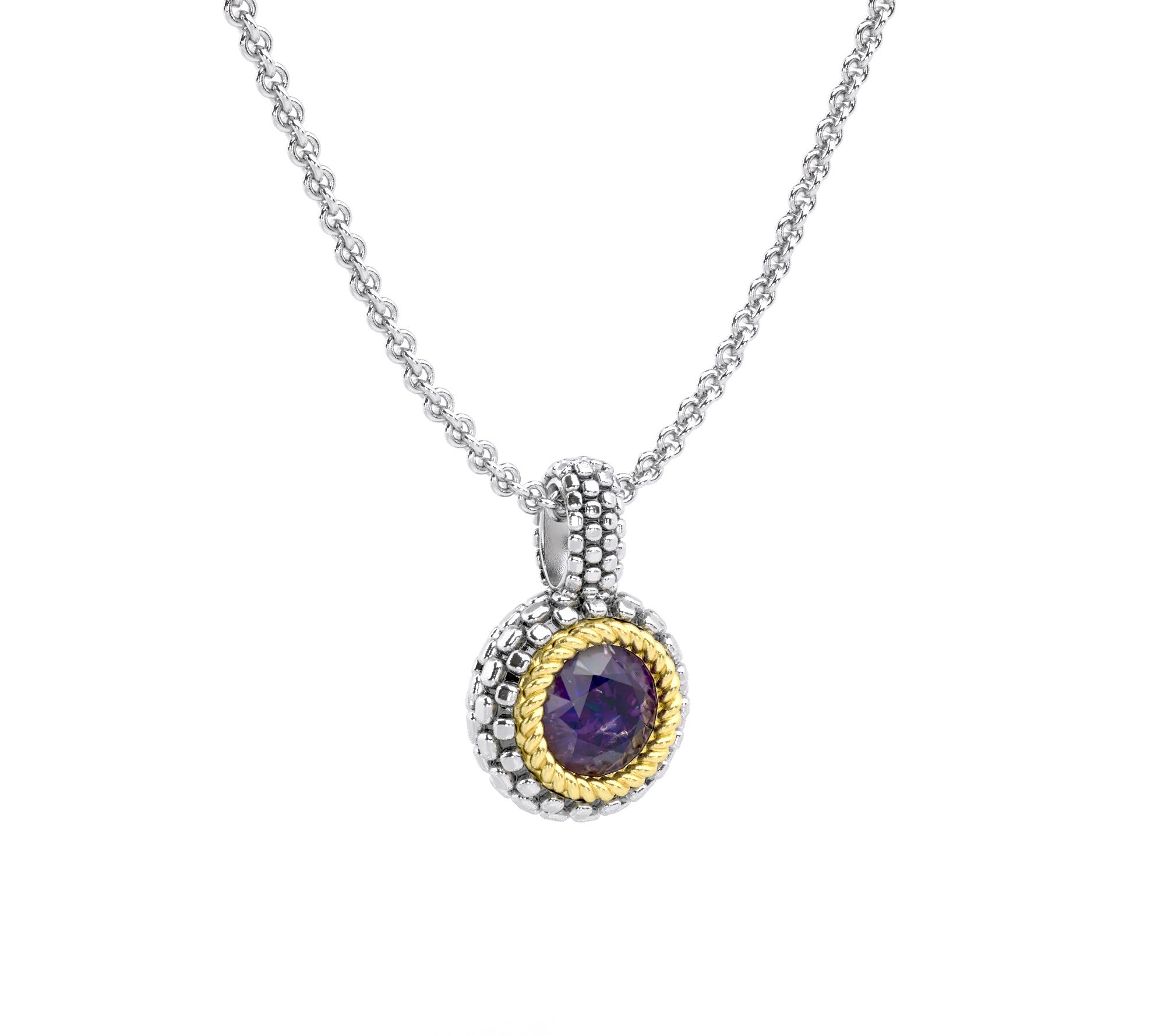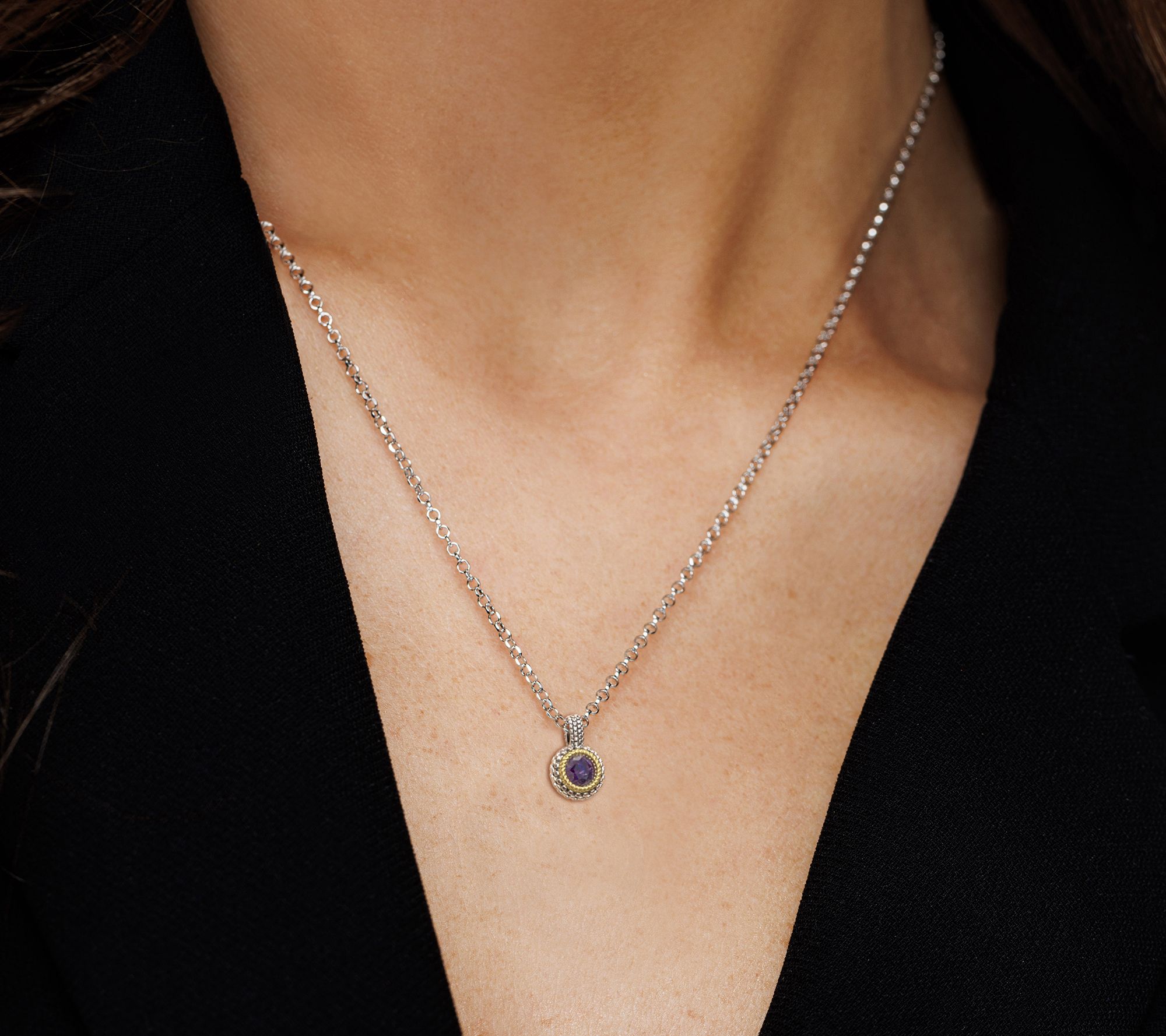 Soft shimmer and rich color bring a fresh perspective to any outfit with this gemstone pendant necklace. Whether you're celebrating a birthday, dressing up for dinner, or adding a pop of color to your everyday look, this circle pendant in sterling silver and 14K gold-plated sterling silver offers a timeless way to shine. From Or Paz® Sterling Silver Jewelry.