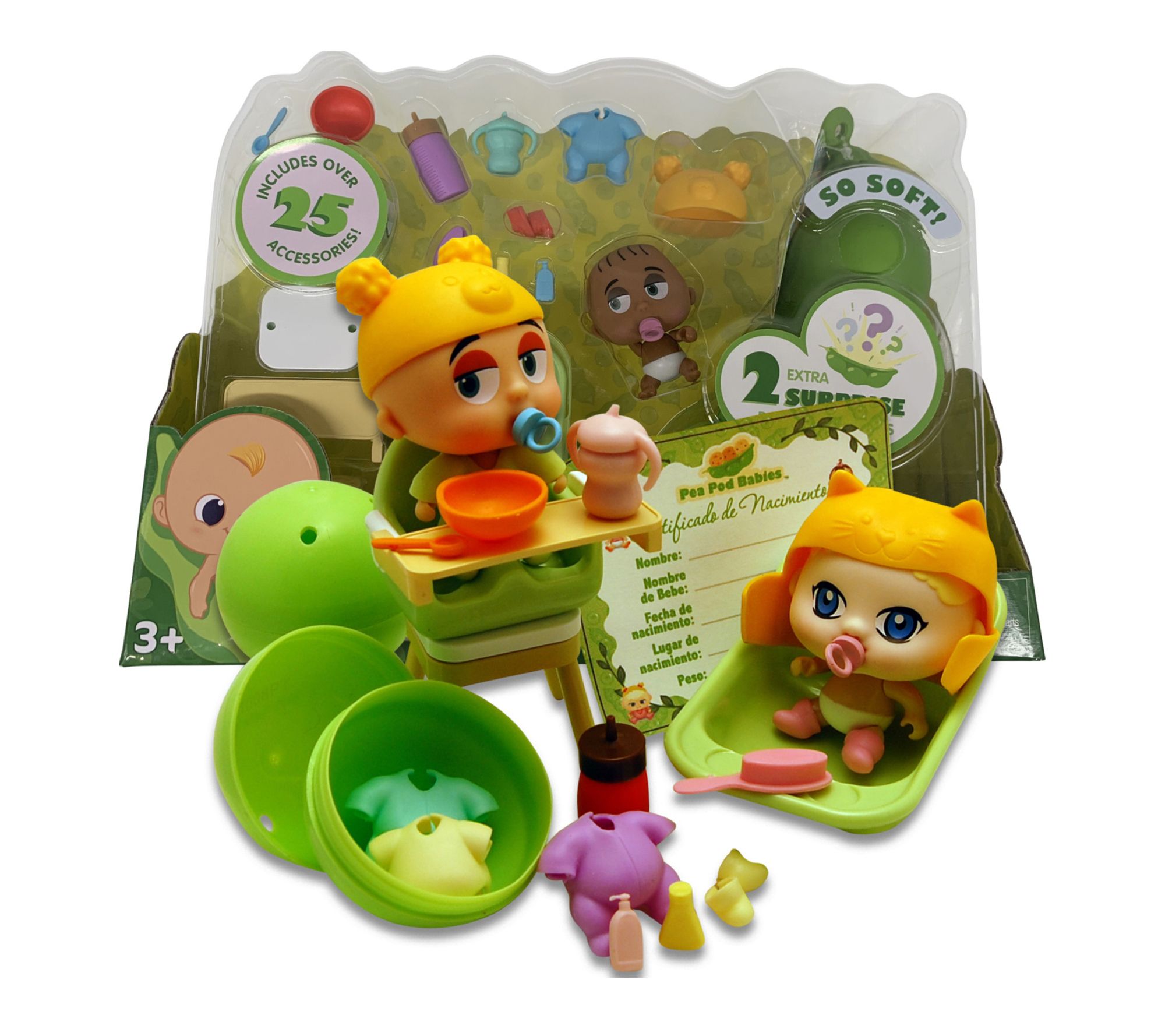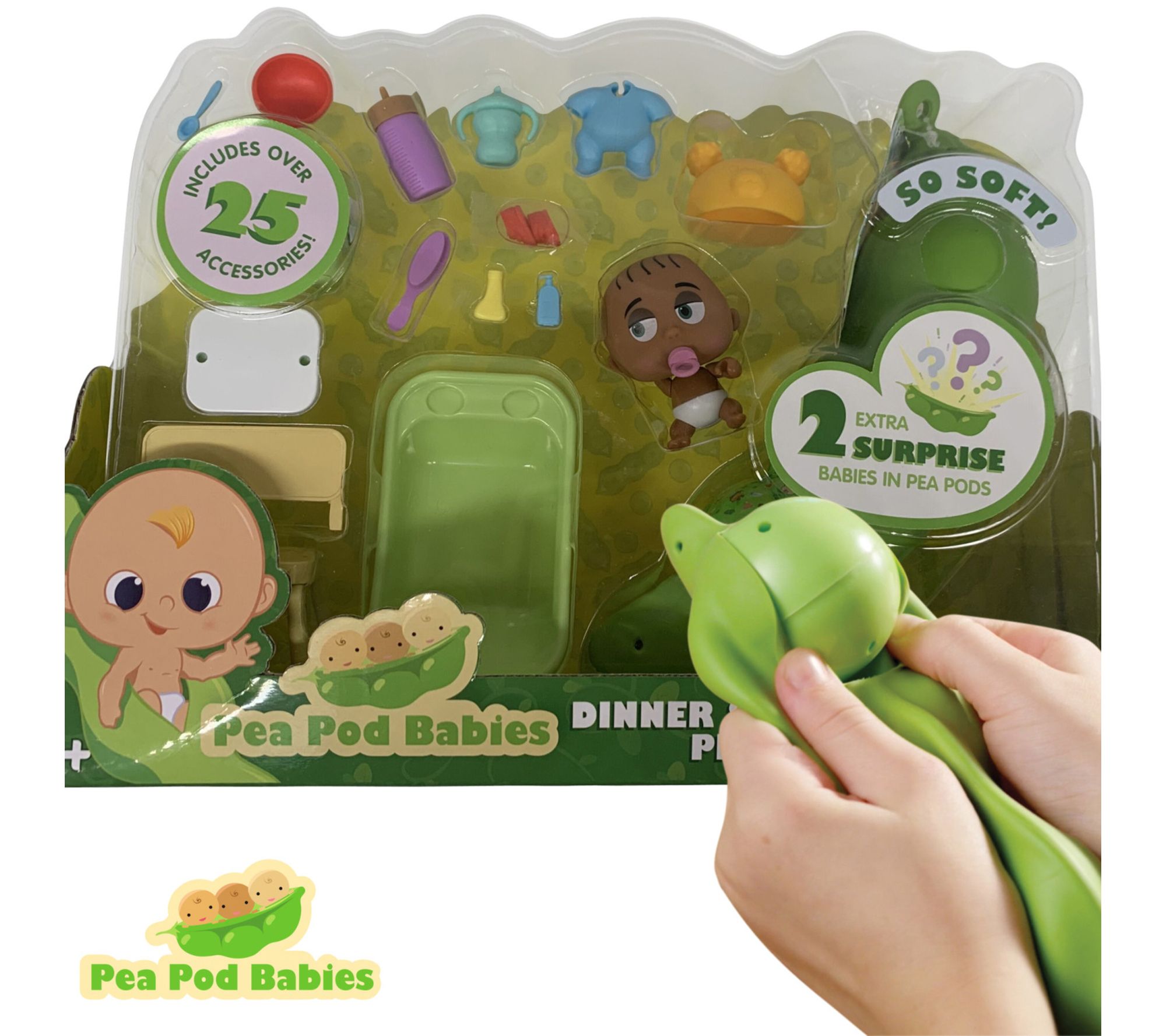 Little ones can embark on imaginative adventures with this 27-piece playset, designed to bring the magical world of Pea Pod Babies to life during dinner and bath time. Children uncover surprise dolls, mix and match accessories, dress their new friends, and create heartwarming stories from mealtime to bedtime. From Pea Pod Babies.