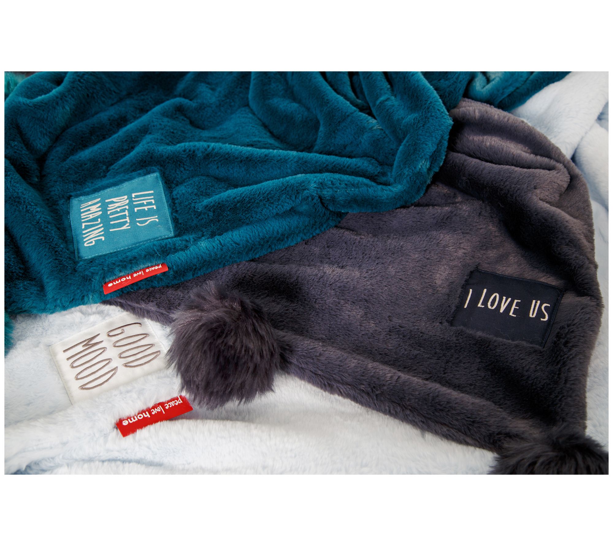 Peace Love World 60" x 70" Super Plush Throw with Pom-Poms