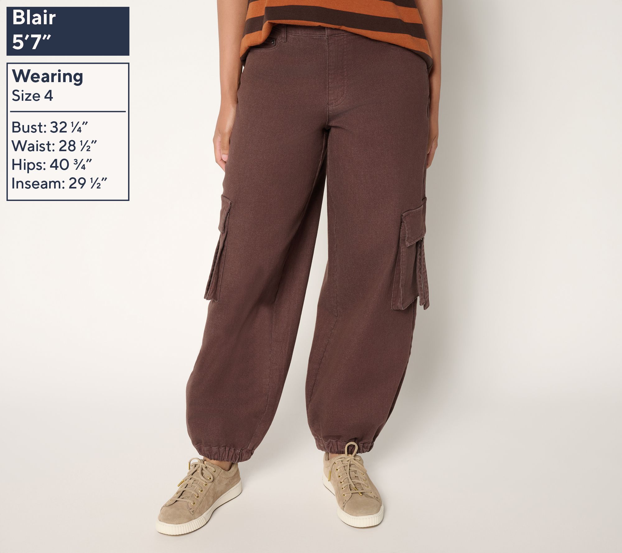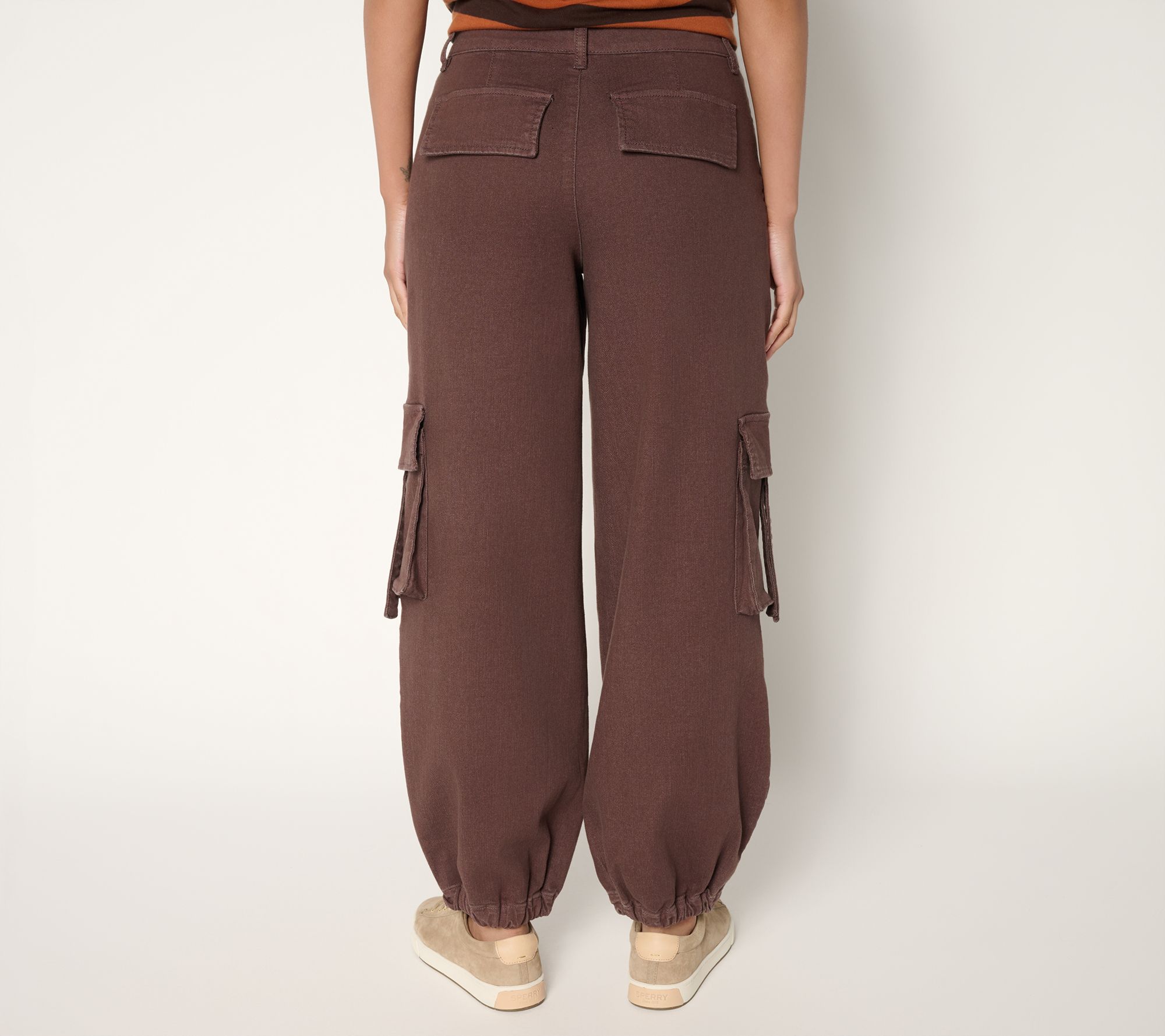 Outdoor adventures and city strolls are a breeze in these denim cargo pants with a modern tapered leg and ankle-grazing length. Designed with a functional zip fly, contour waistband, and handy 3D cargo pockets, they offer versatile style whether you're exploring or relaxing. Adjustable tie accents and an easy fit keep you moving comfortably all day. From Peace Love World.