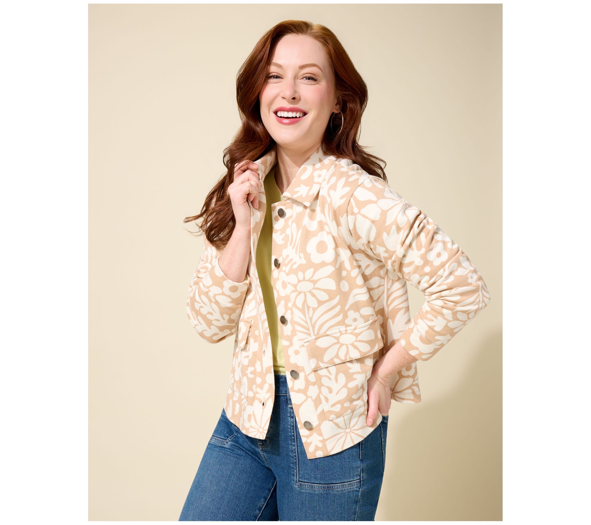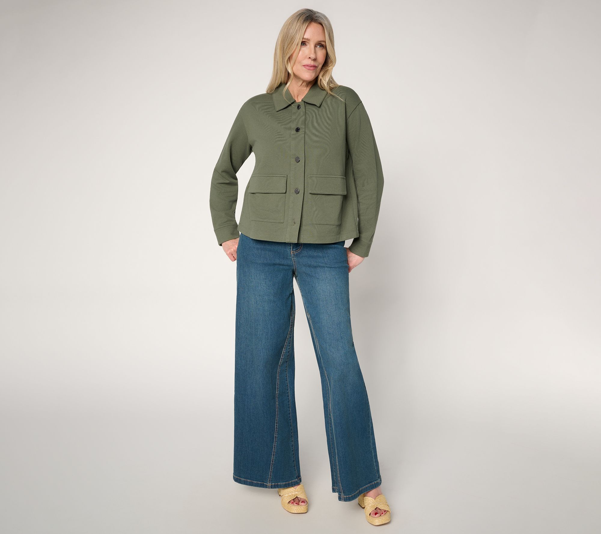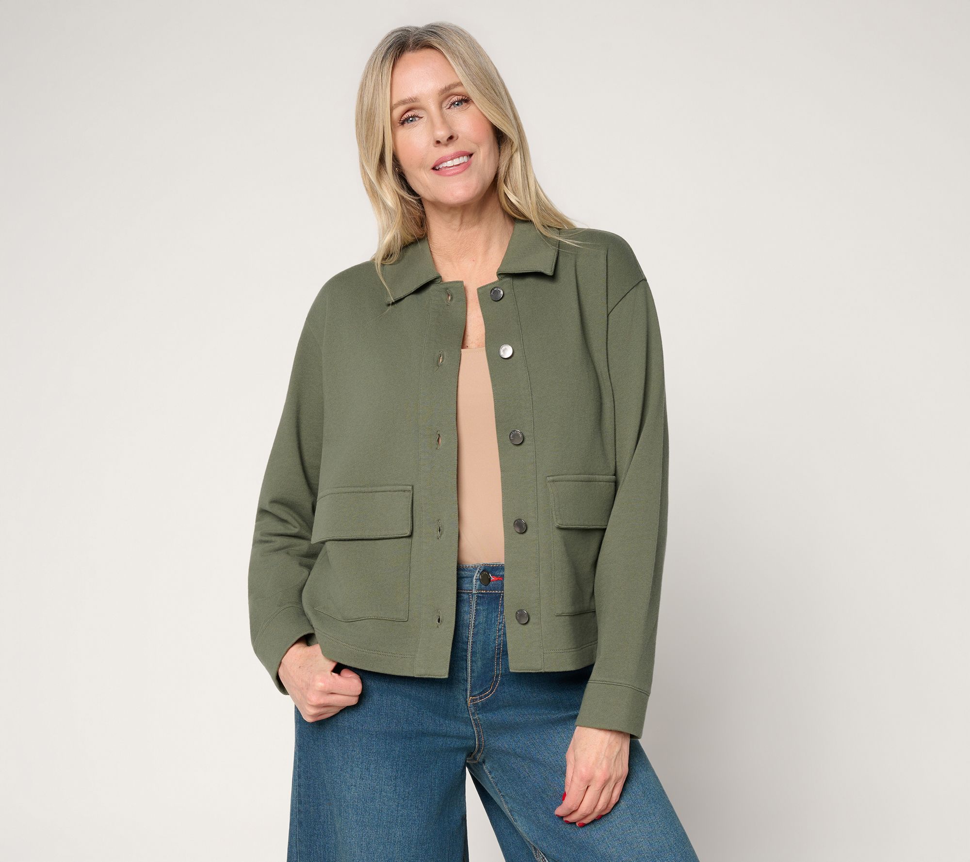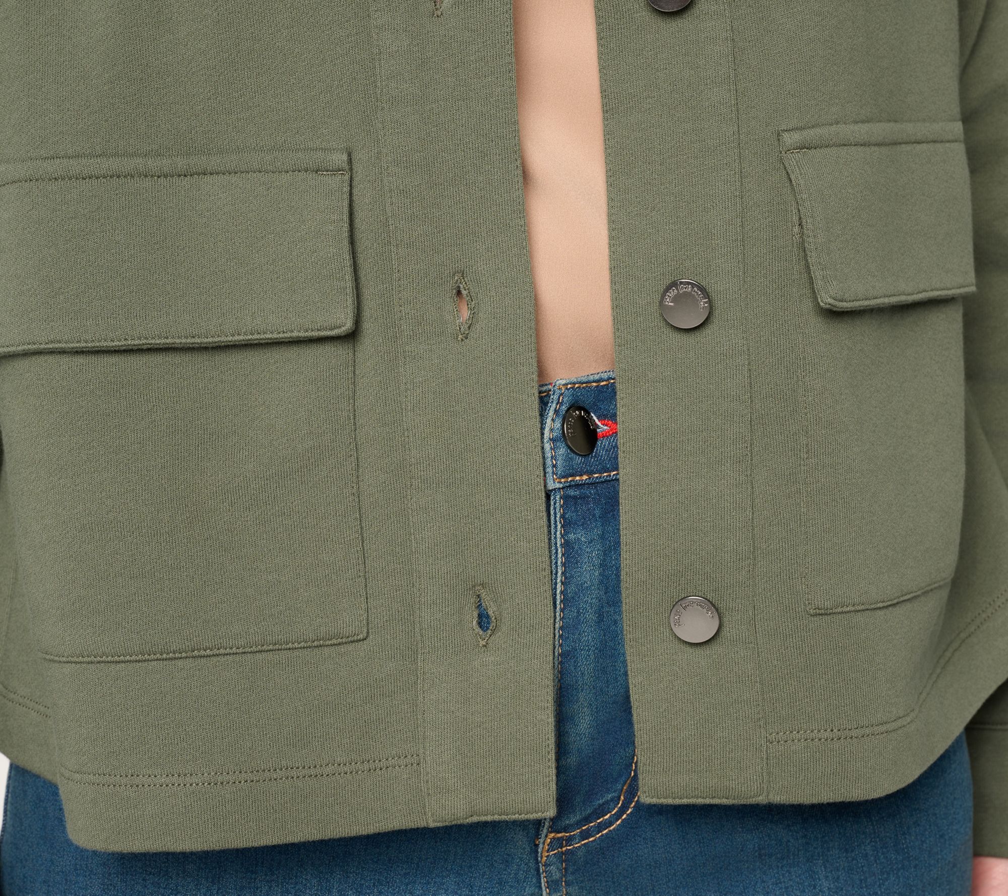 Peace Love World Button Front Utility Jacket w/Patch Pockets