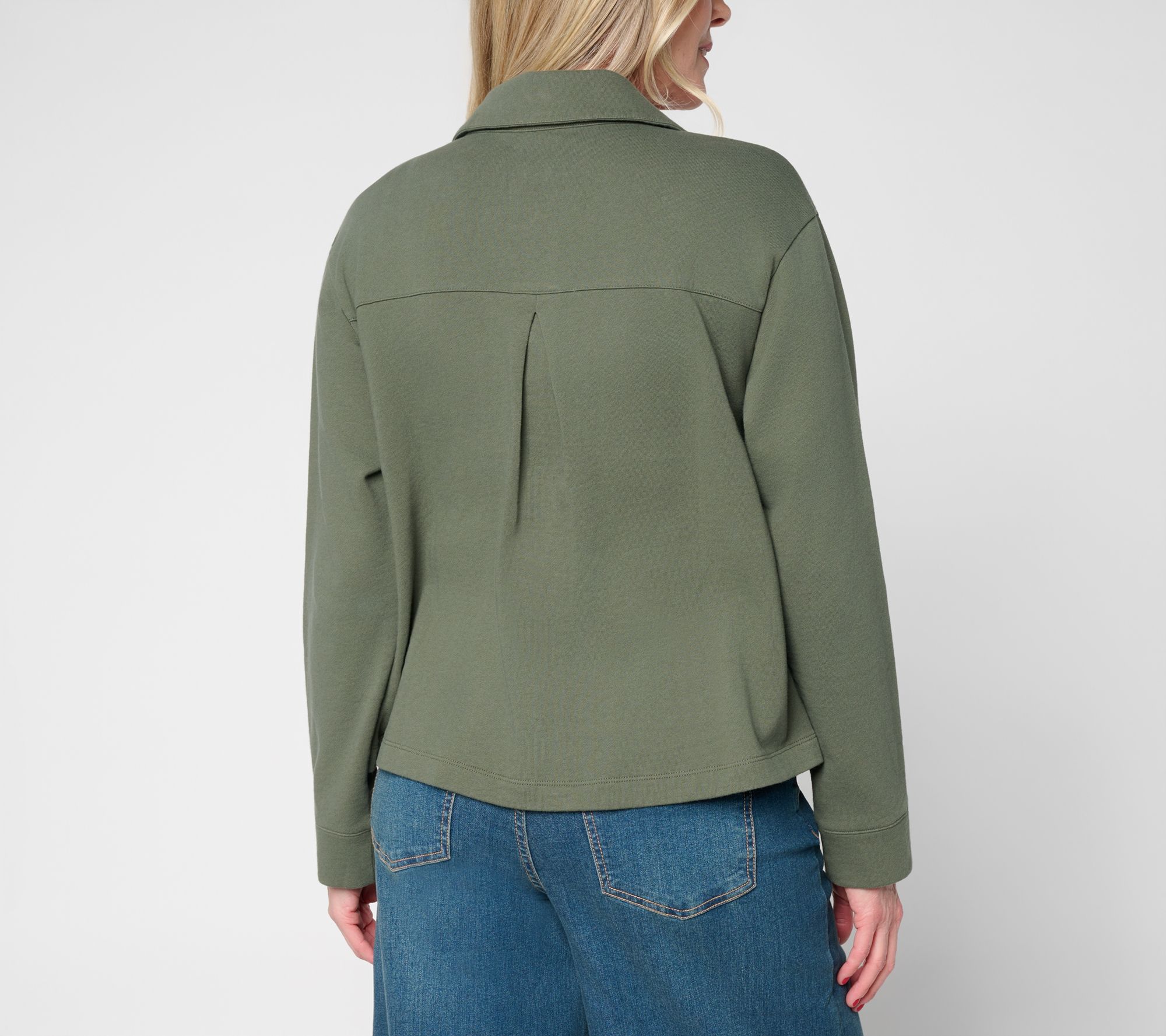 • Features: collar, button-front closure, patch pockets with flap, long sleeves with cuff, back yoke, center back inverted box pleat