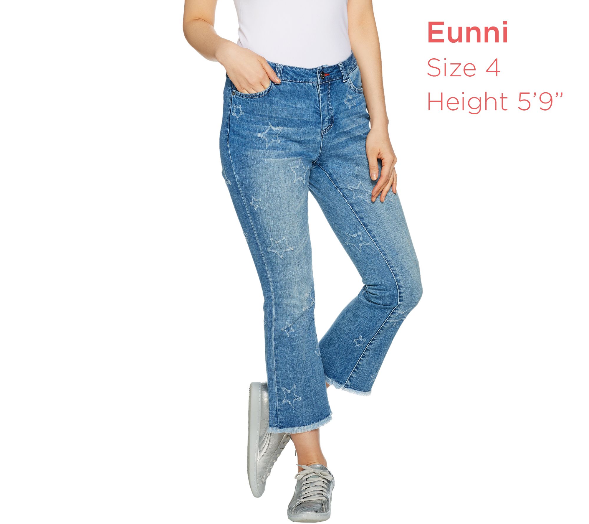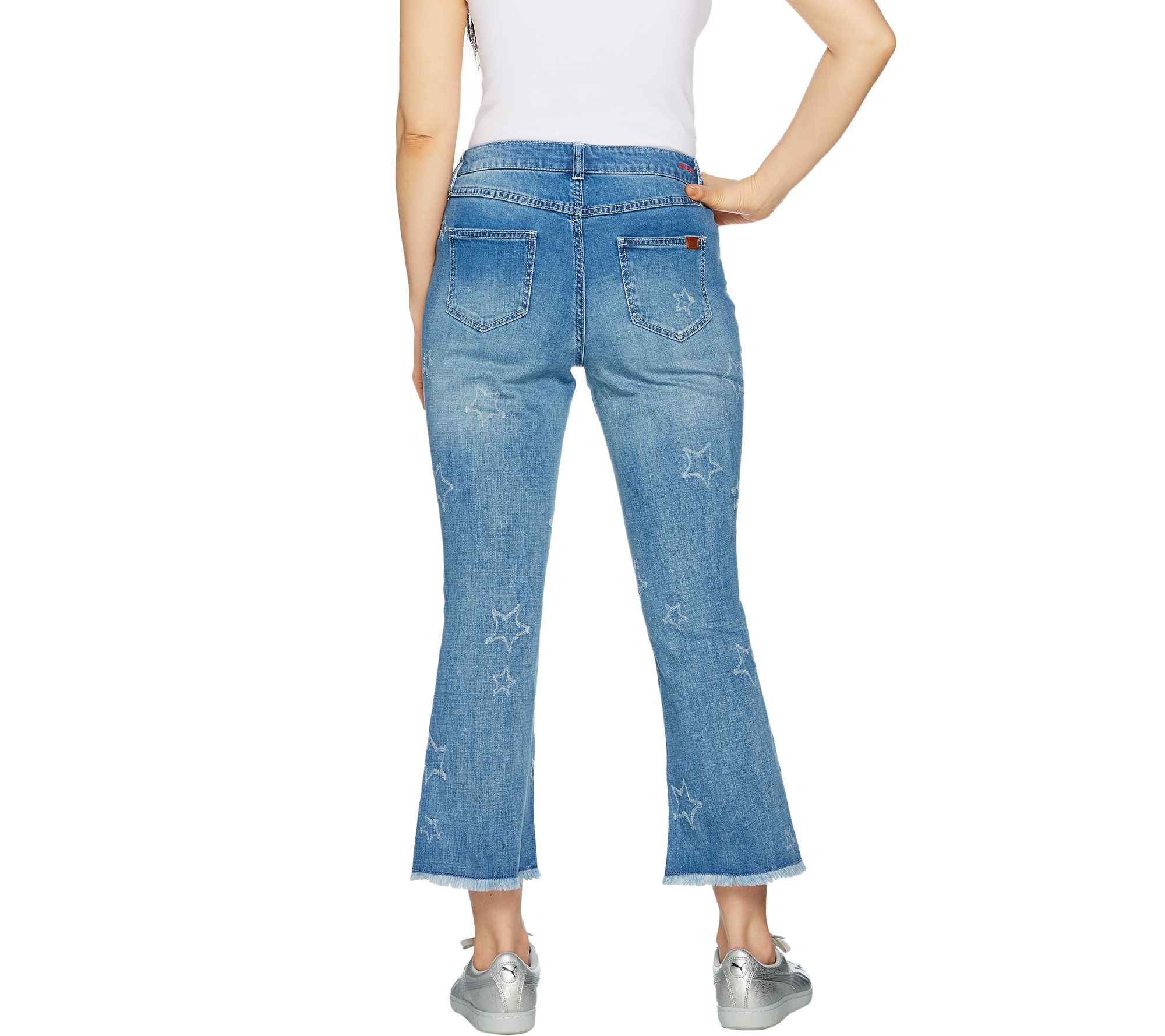 Create an out-of-this-world ensemble with these distressed-star-patterned cropped jeans. From Peace Love World.