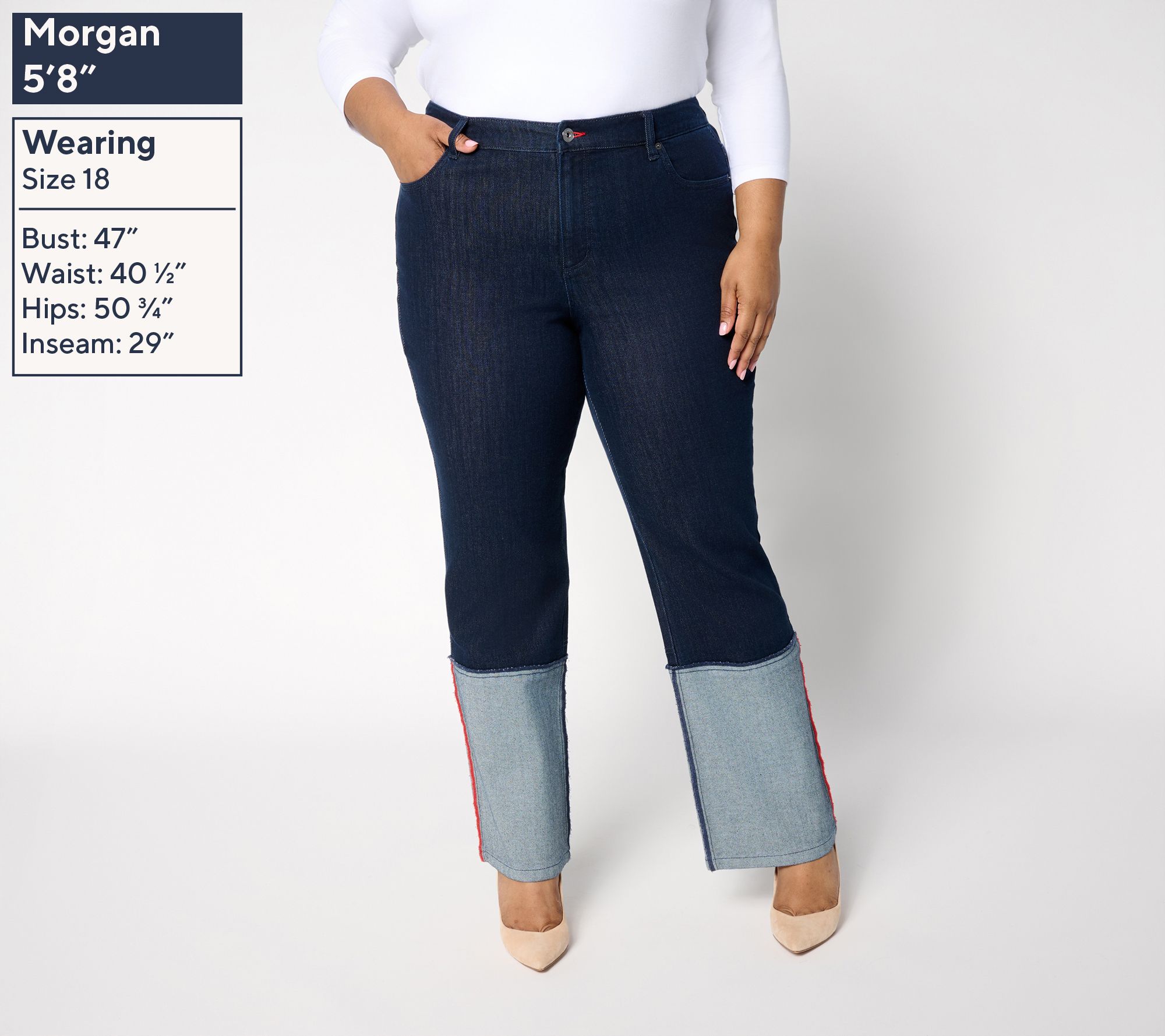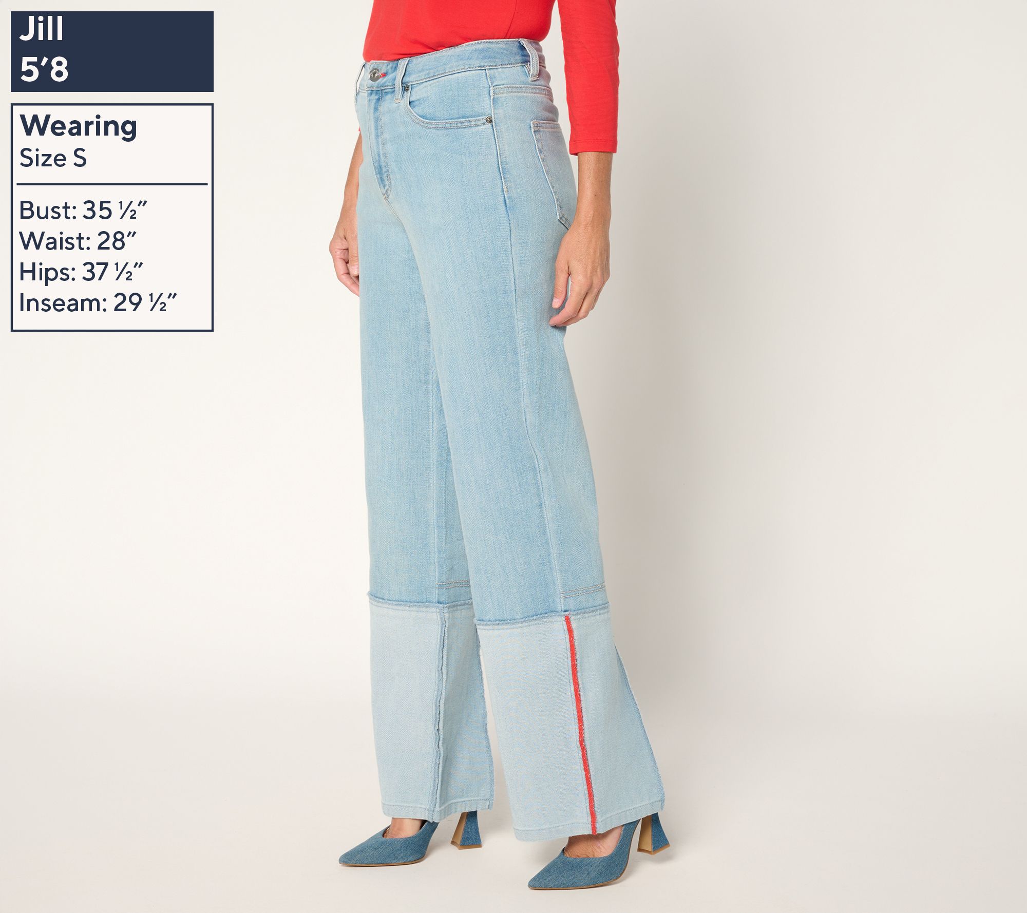 Now wearing: main character energy. Swap out your regular jeans for something special from Peace Love World. These straight-leg jeans make the switch easy with an attention-grabbing reverse pieced construction, contrast outseam stitching, and a playful back leg slit. Put your protagonist personality on display. From Peace Love World.