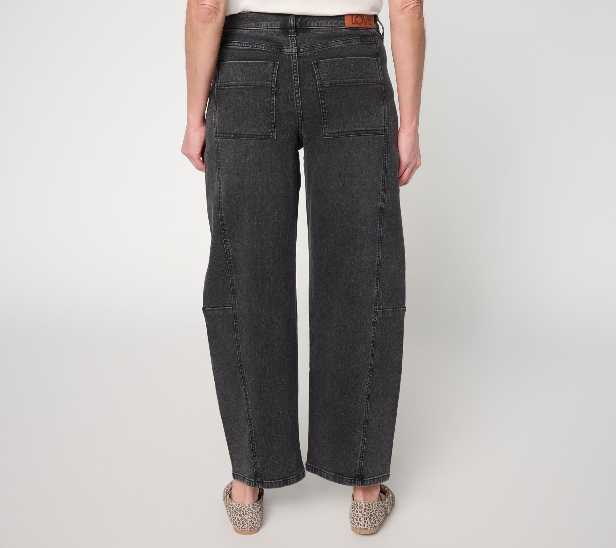 Whether stepping out for a coffee date or relaxing on a weekend, these petite barrel-leg jeans bring laid-back ease with thoughtful details like a contour waistband and subtle embroidery. The soft fabrication and ankle length flatter your shape while a slim, modern silhouette is easy to style with everything from sneakers to ankle boots. From Peace Love World.