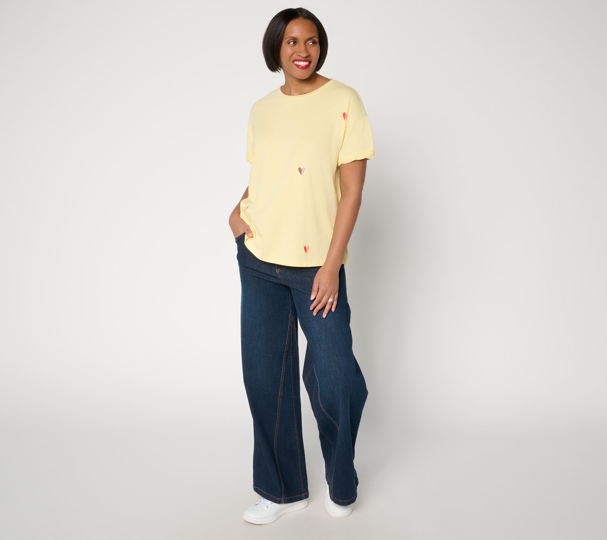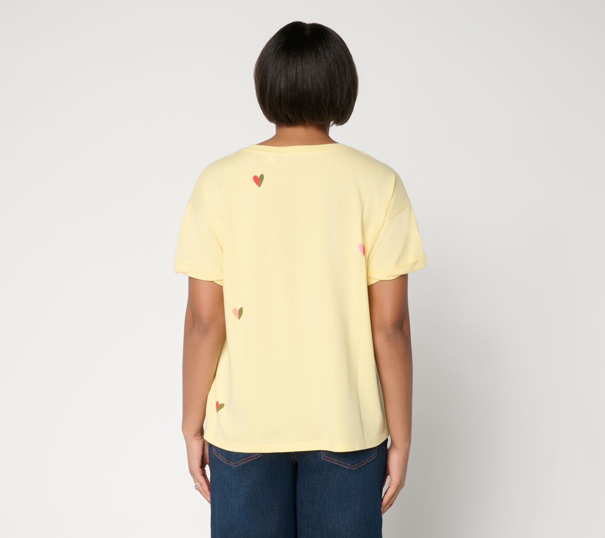 Head to brunch, stroll the market, or lounge at home with this playful printed tee -- thoughtfully designed with a classic crew neck, relaxed short sleeves, and a soft knit feel. Its lively motif adds a touch of fun for every laid-back look -- try it with denim or shorts for an easy outfit that shines all day. From Peace Love World.