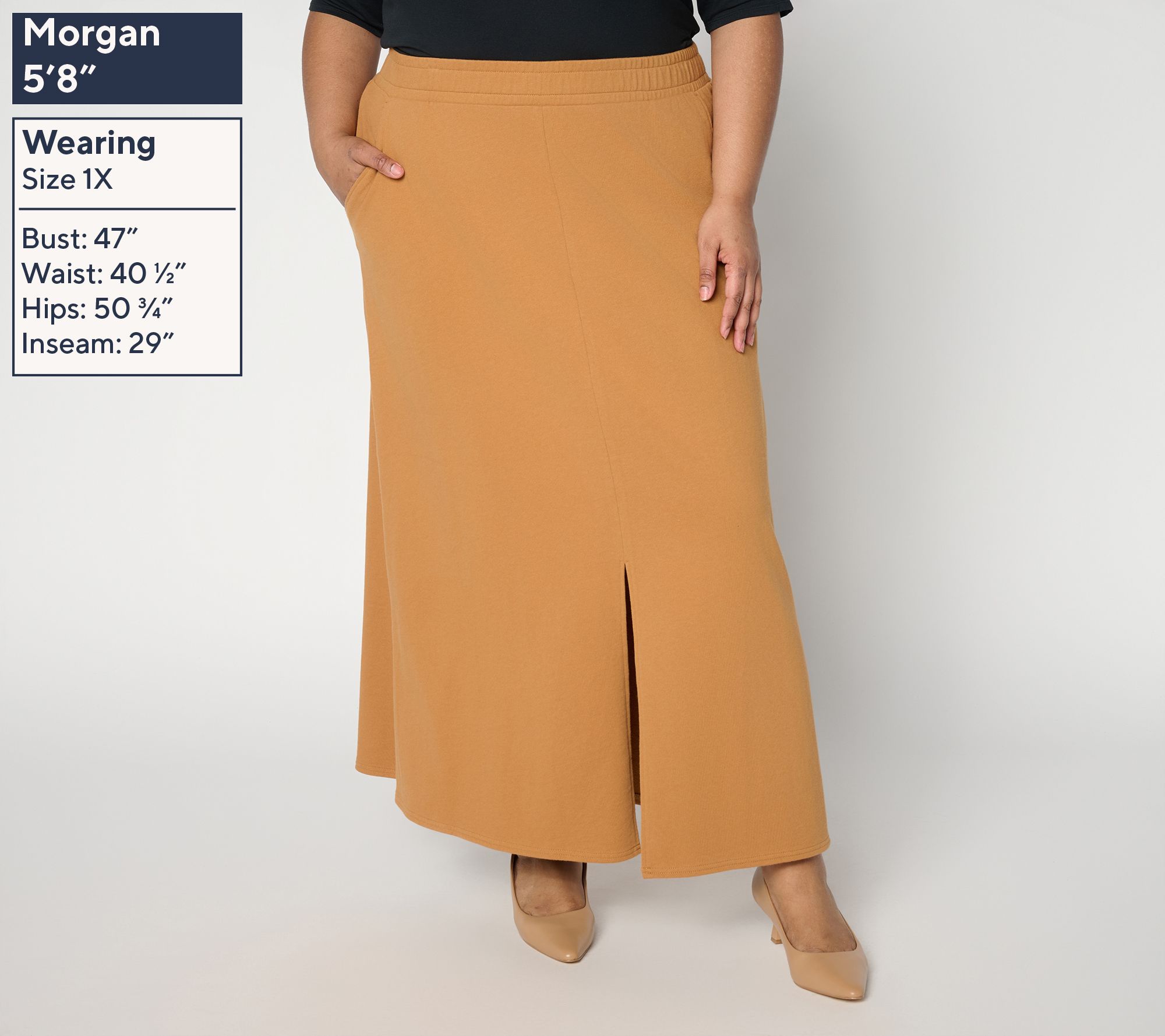 An effortlessly chic and comfortable choice for spontaneous coffee runs, shopping, or catching up with friends, this pull-on skirt is designed with slash pockets and a center front vent. Dress it up or down with your favorite tee or blouse. From Peace Love World.