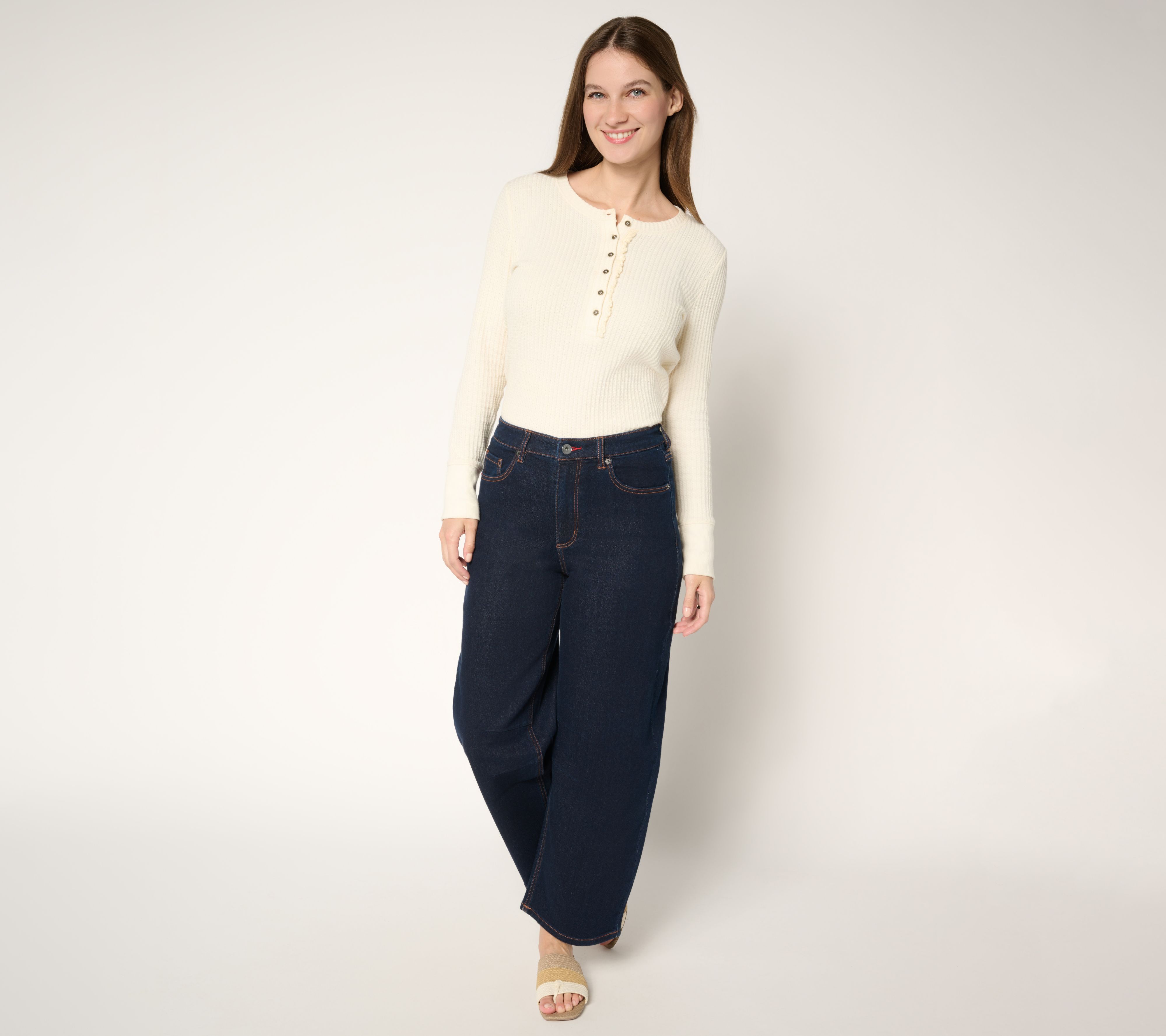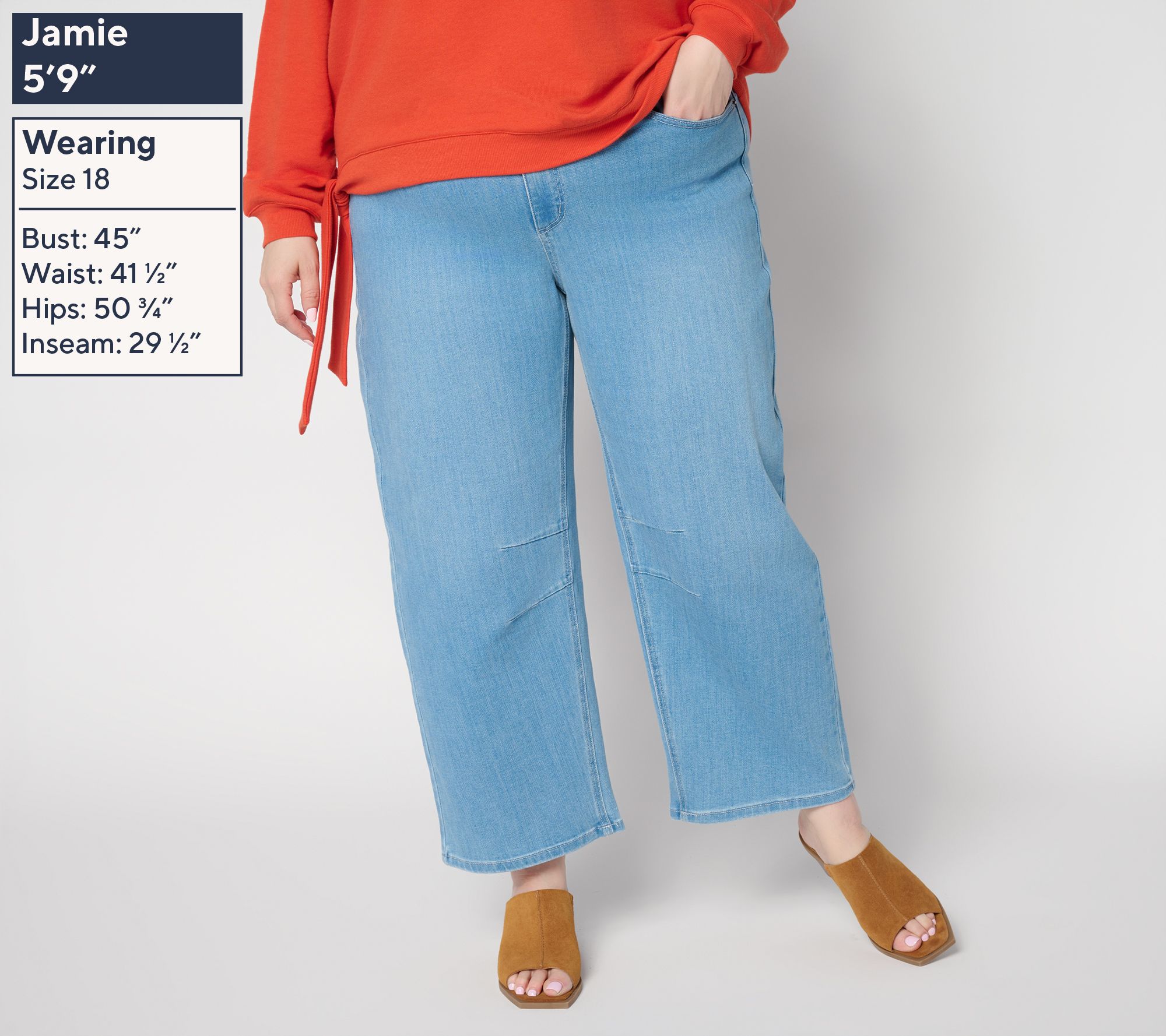 • Leg Shape: barrel-shaped full leg; widens slightly from thigh to leg opening