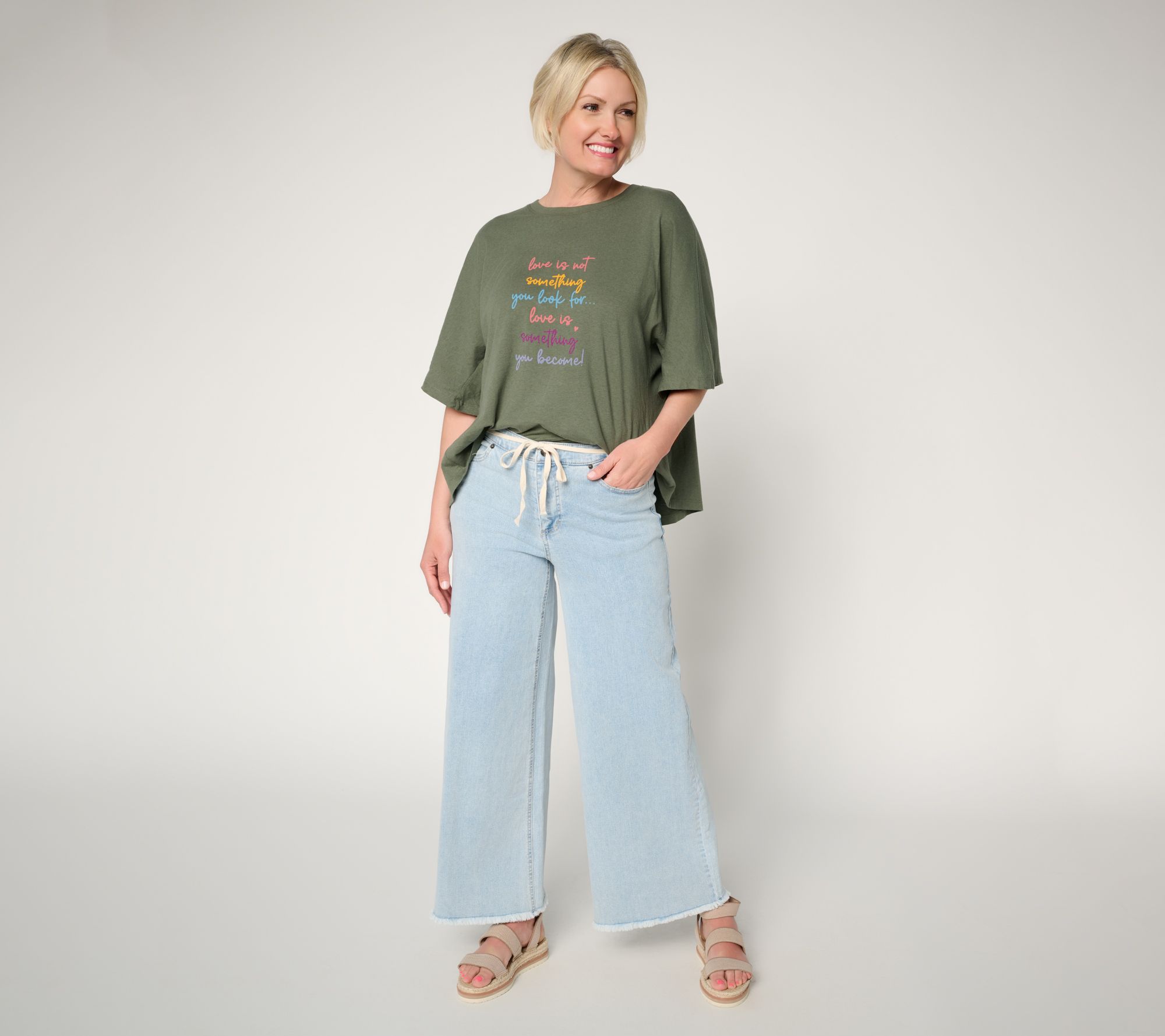 Bridging relaxed days and chic outings, these Peace Love World ankle jeans bring style and comfort together with their modern drawcord waist and raw edge fray. Soft stretch denim moves with you, while the wide leg silhouette and practical patch pockets add just the right touch for any casual adventure. From Peace Love World.