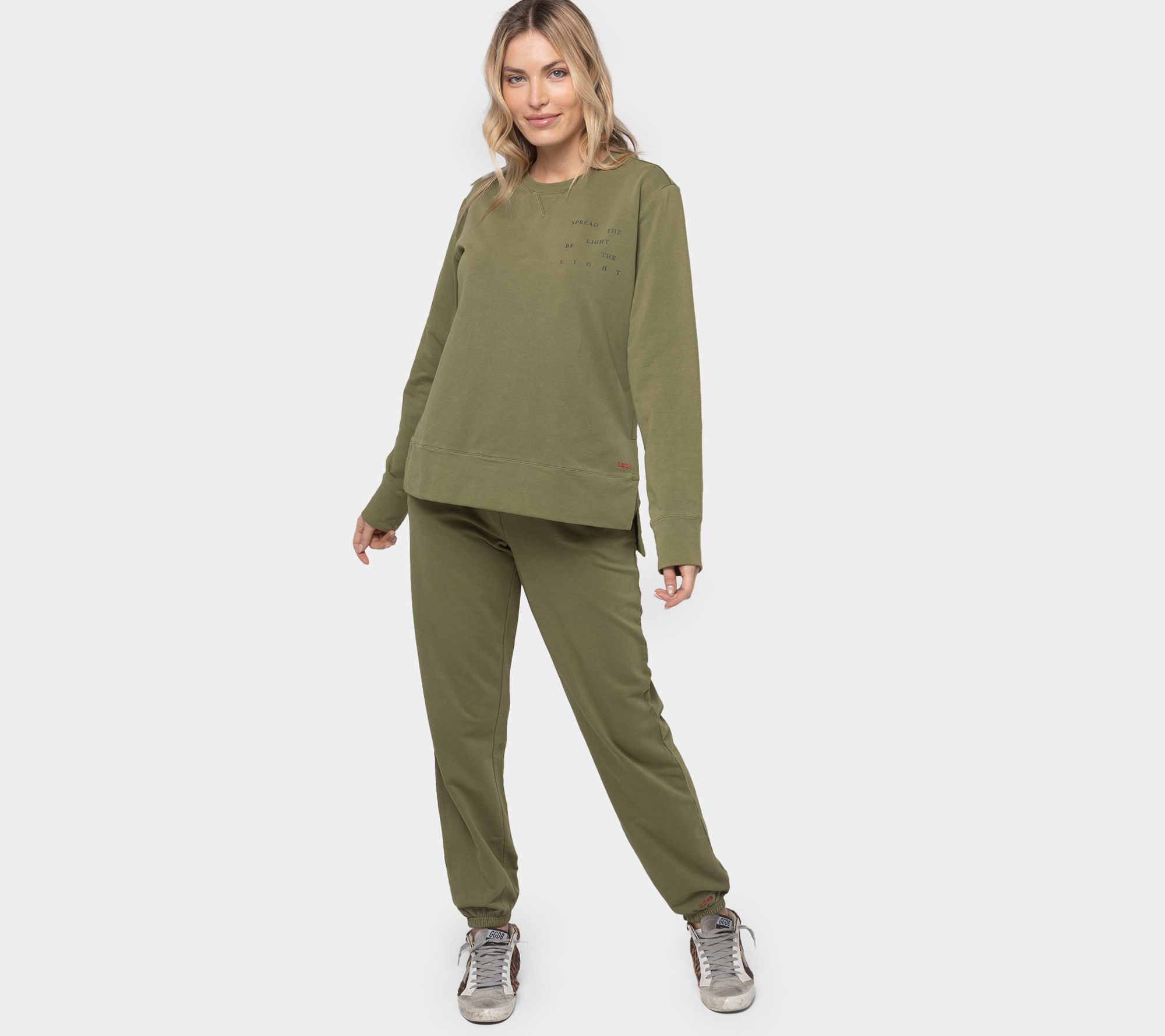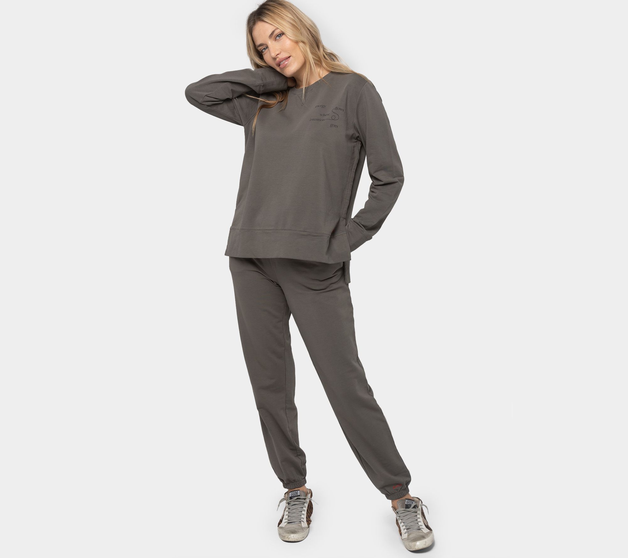 Let's be honest. There are days when we need just a little boost to bounce us out of bed. Slide off the covers, set your feet on the floor, and slip into these cozy knit sweatpants that'll carry you from the breakfast table to the gym to the WFH office chair. Or maybe you're 'round-the-town errand-running or just keeping up with the kiddos. Whatever your day's got in store, there's a message of inspo printed on these pants to remind yourself how awesome you are. Feed off it's energy to fuel your day. From Peace Love World.