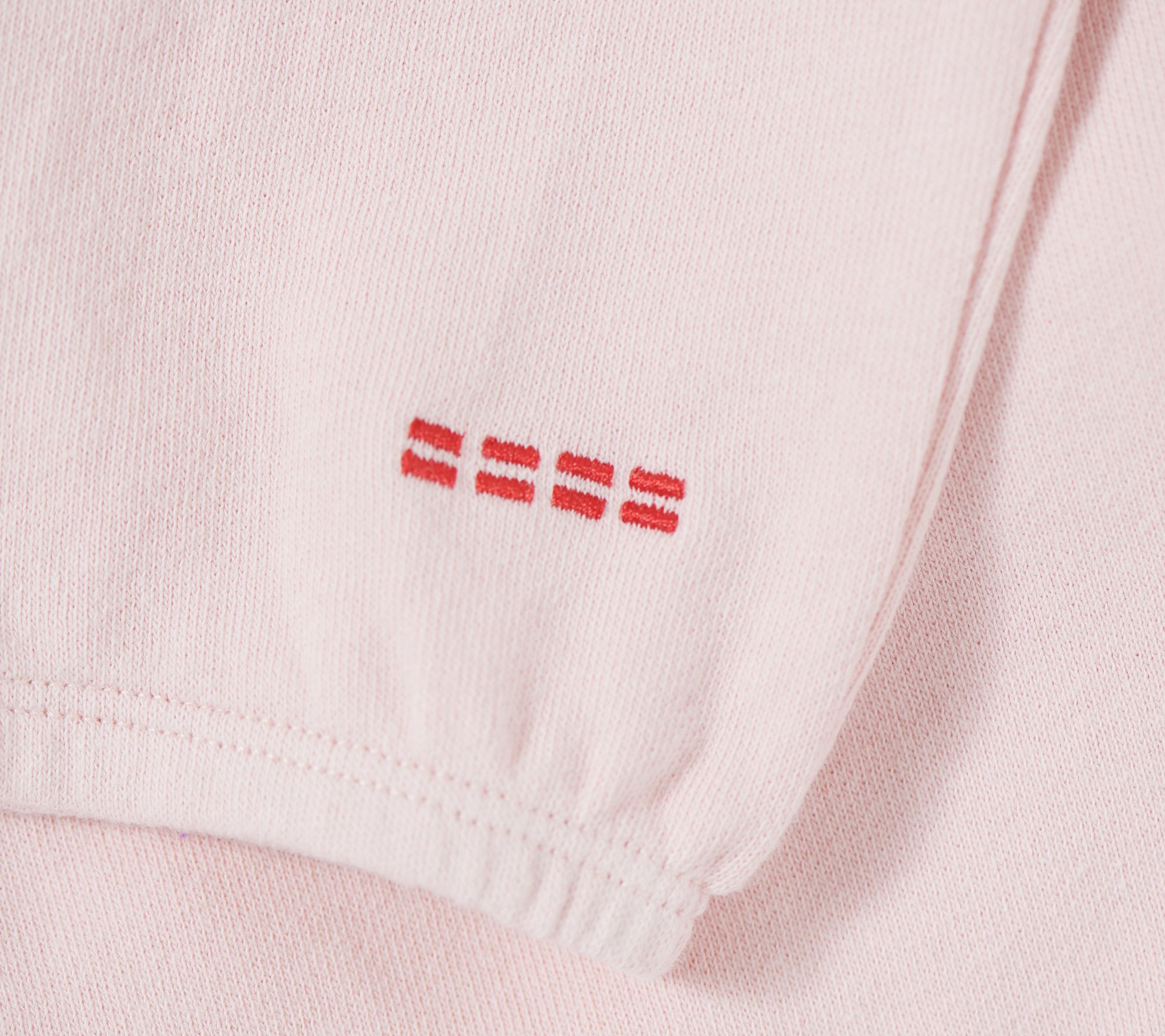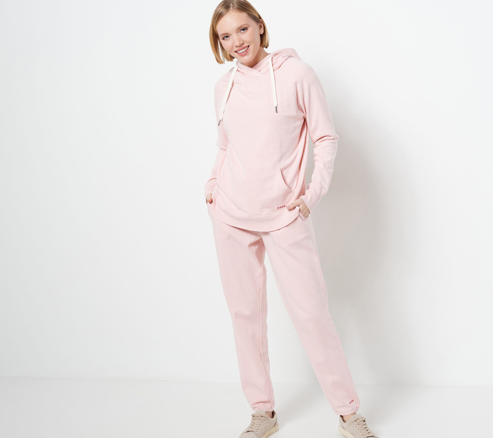 Features: side seam pockets, braided drawcord, tunneled elastic, print at leg, red dash embroidery