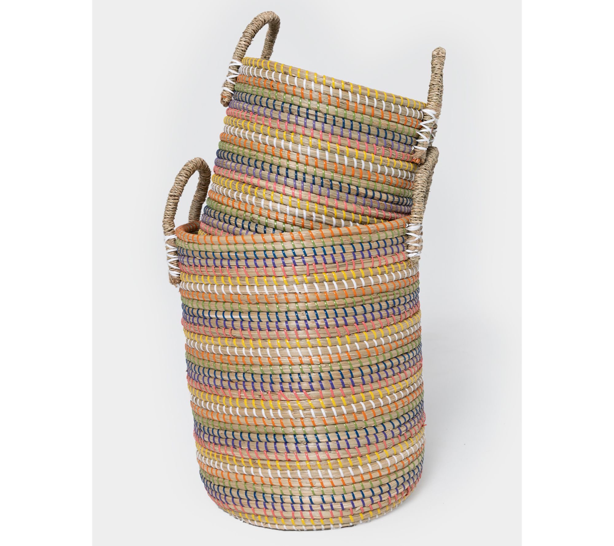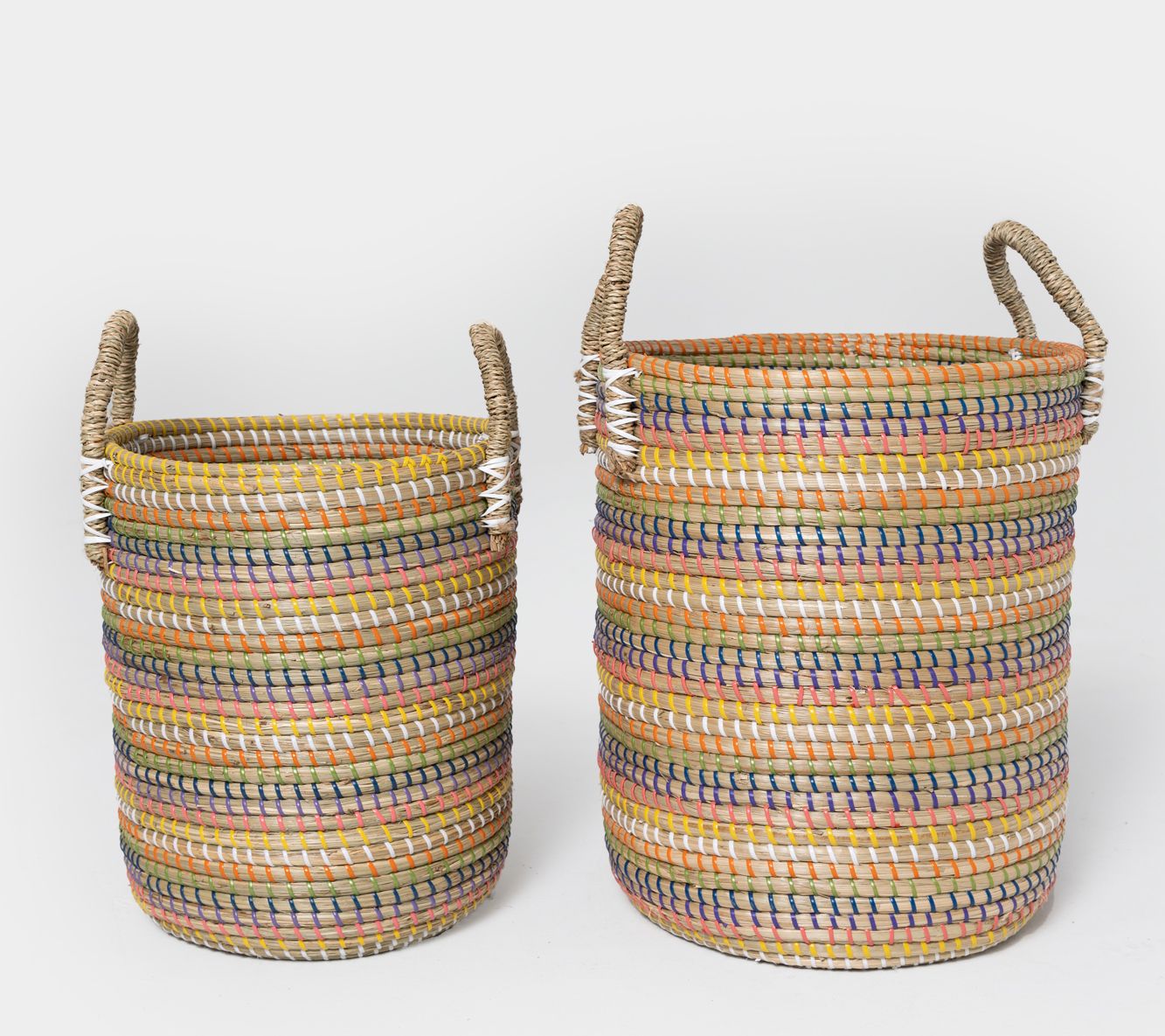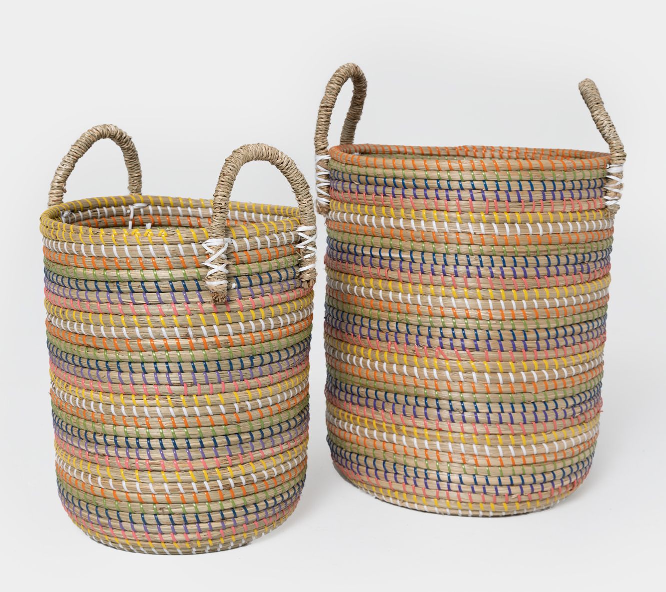 Your crew can pull apart your living space in seconds flat. These pretty, striped seagrass baskets bring the order back to your well-lived-in, well-loved home with a designated drop spot for toys, blankets, pillows, and towels. From Peace Love World.