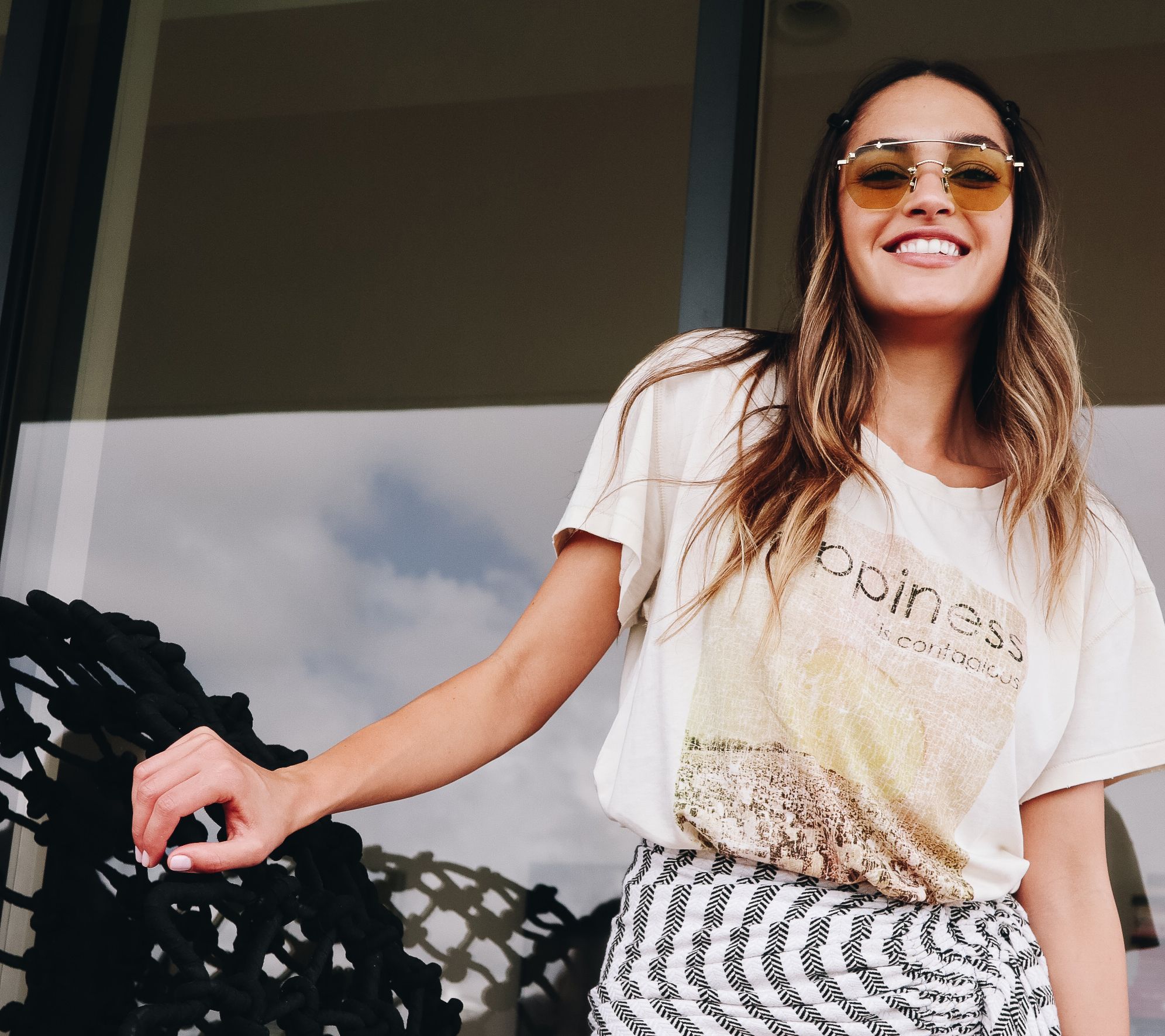 Spread love and happiness with the positive message printed on this vintage-style tee. From Peace Love World.