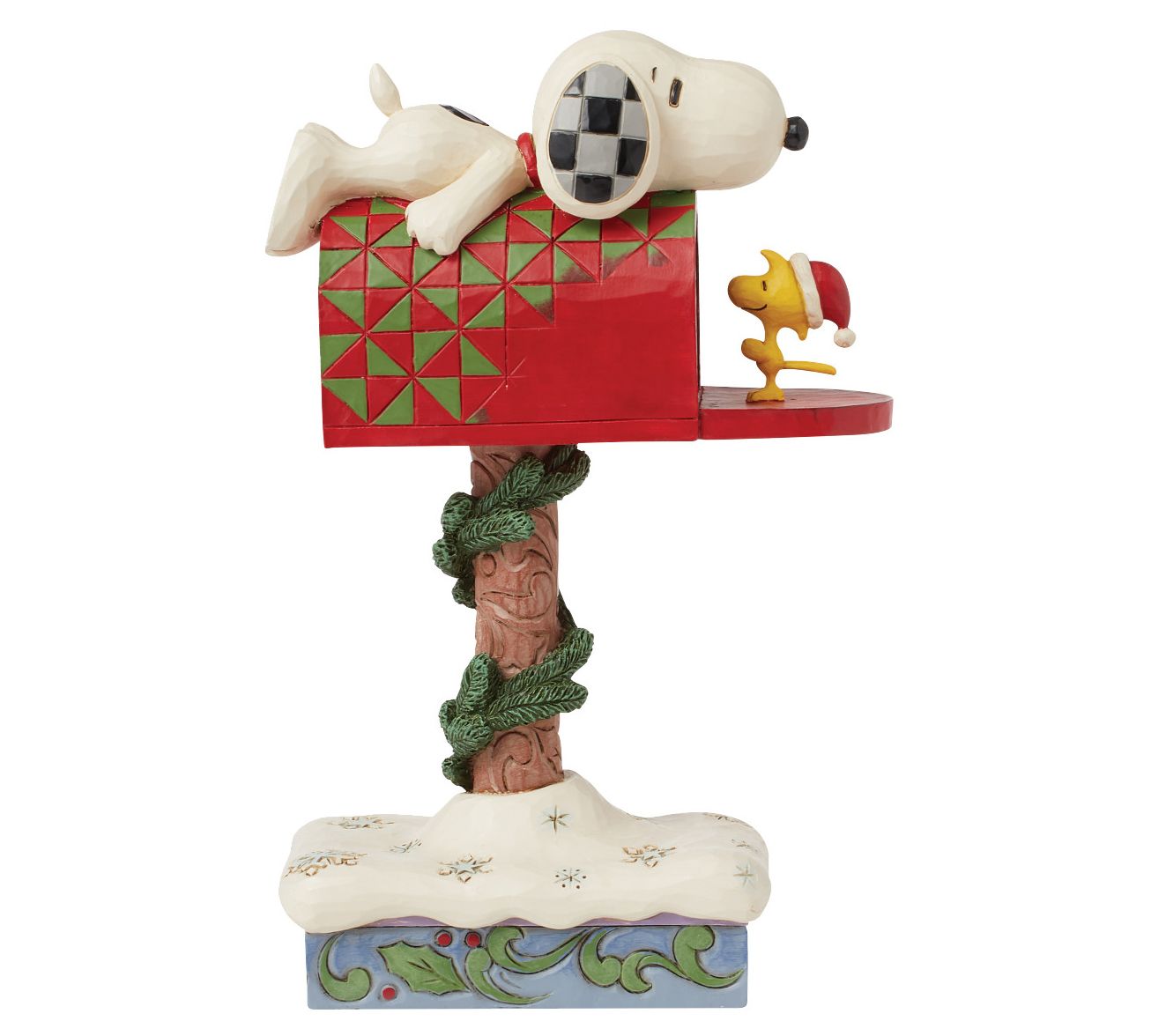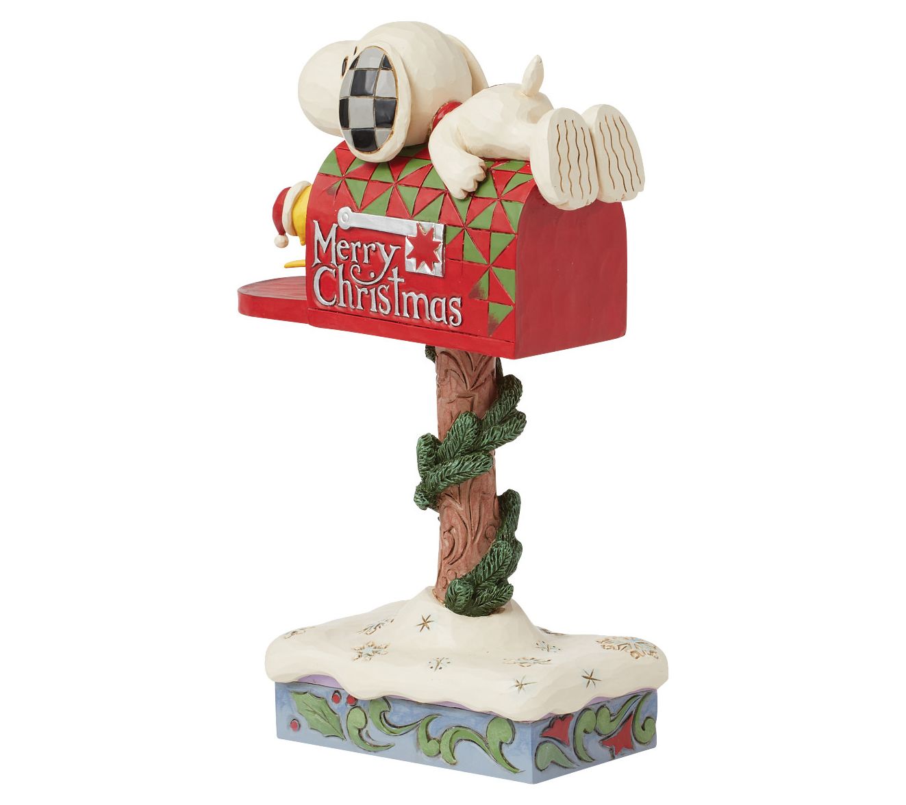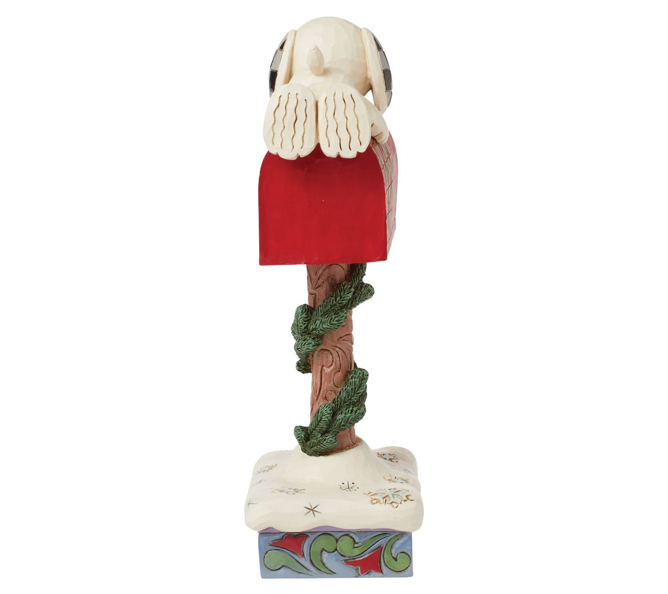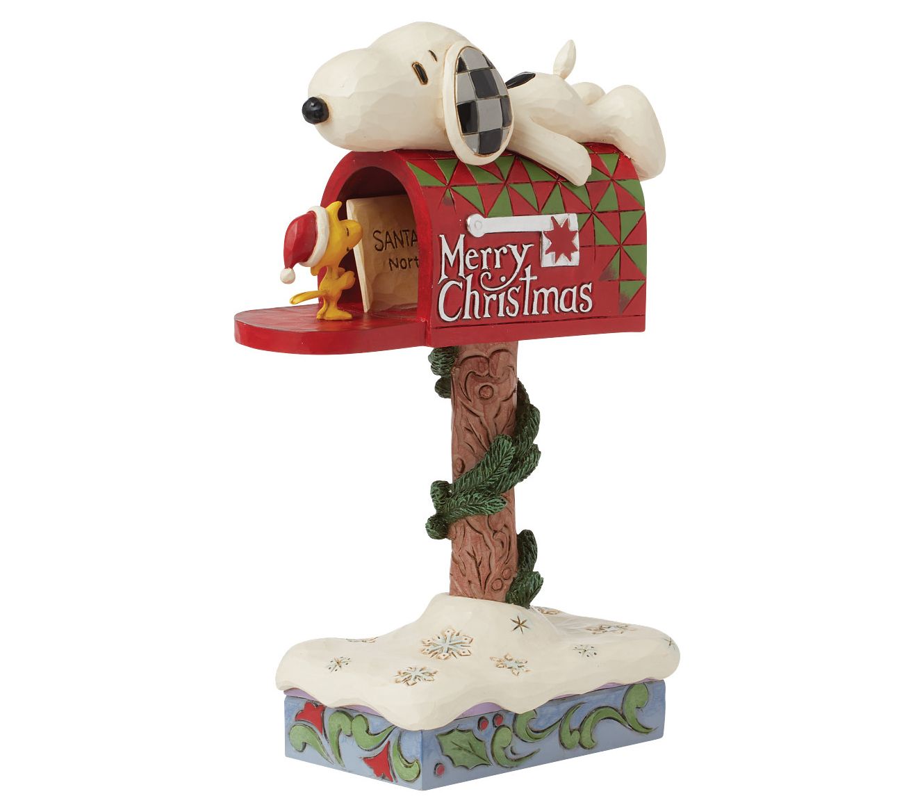 Celebrate the holidays with the Peanuts by Jim Shore Snoopy & Woodstock mailbox figurine. This delightful piece features Snoopy and Woodstock sending a letter to Santa, surrounded by a festive garland and patchwork pattern. Perfect for adding a touch of holiday cheer to your home. From Peanuts by Jim Shore.