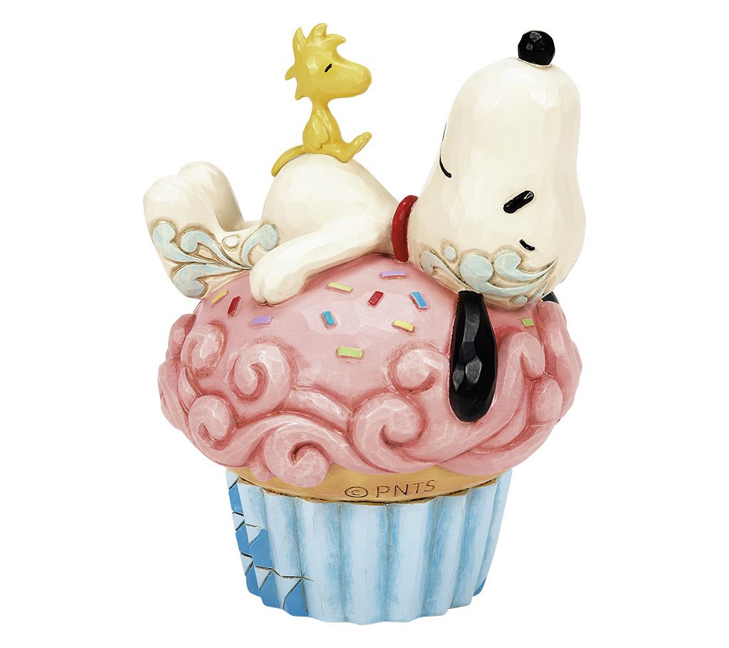 Snoopy and Woodstock find the perfect spot for a nap on top of a beautifully decorated pink cupcake in Jim Shore's delightful design. The intricate rosemaling details and tempting icing make this figurine a whimsical addition to any Peanuts fan's collection. From Peanuts by Jim Shore.