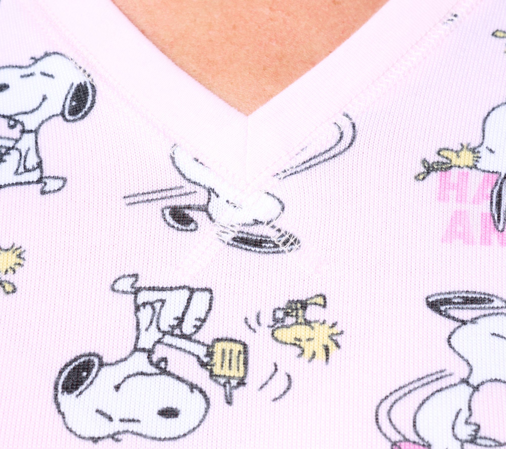 Pullover Features: Peanuts print, V-neckline, long sleeves