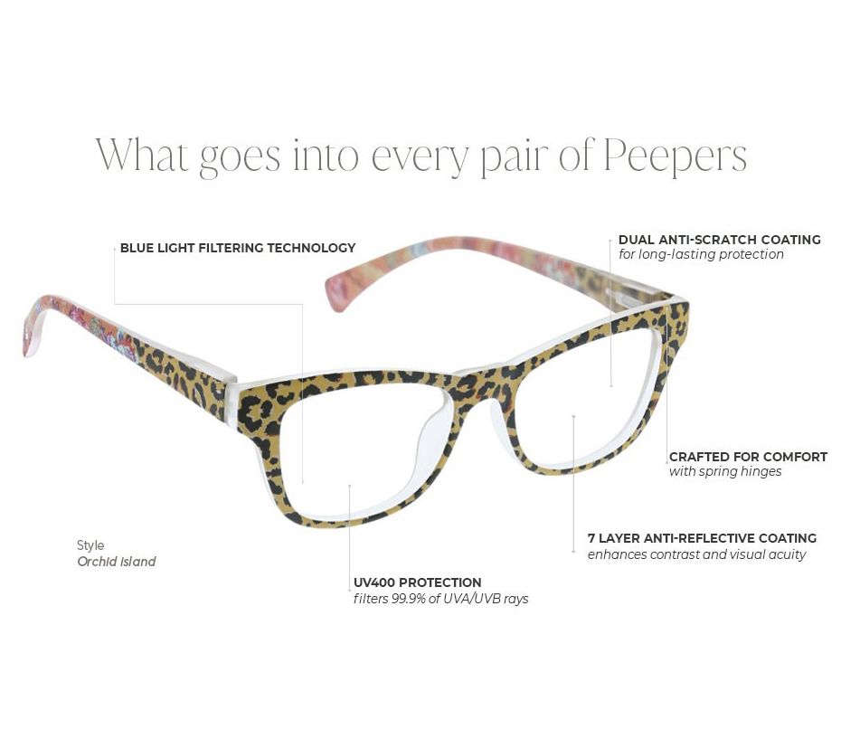 Allover animal and floral print, matte finish, UV and blue-light protection