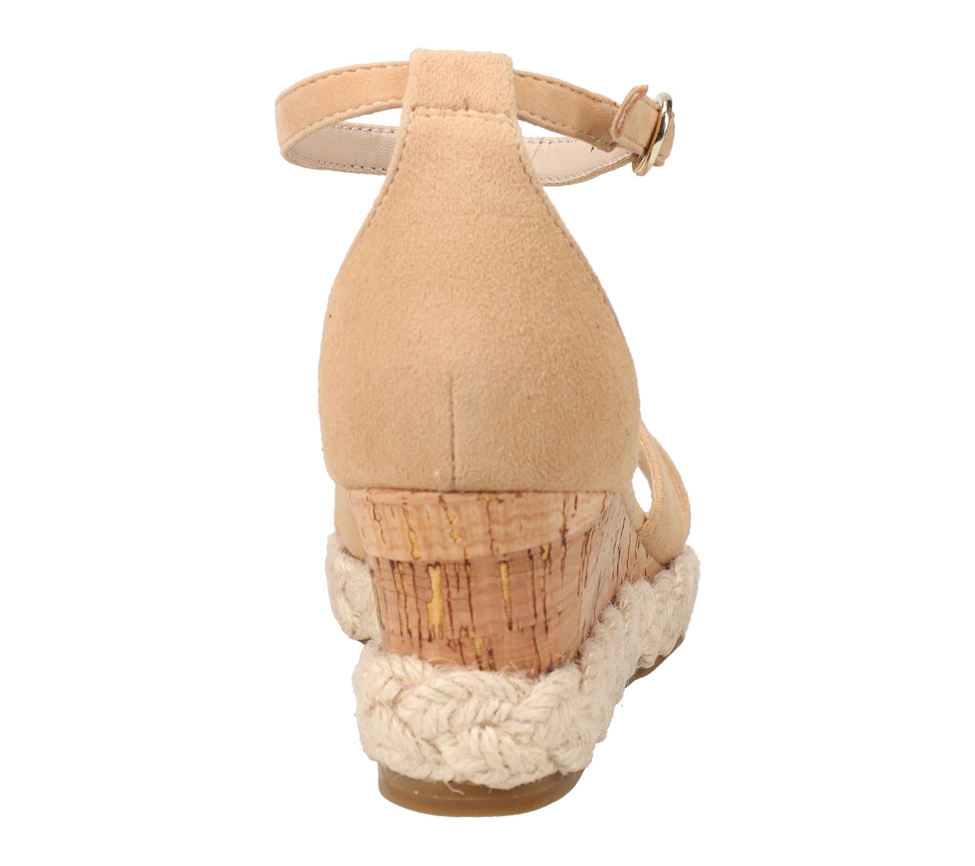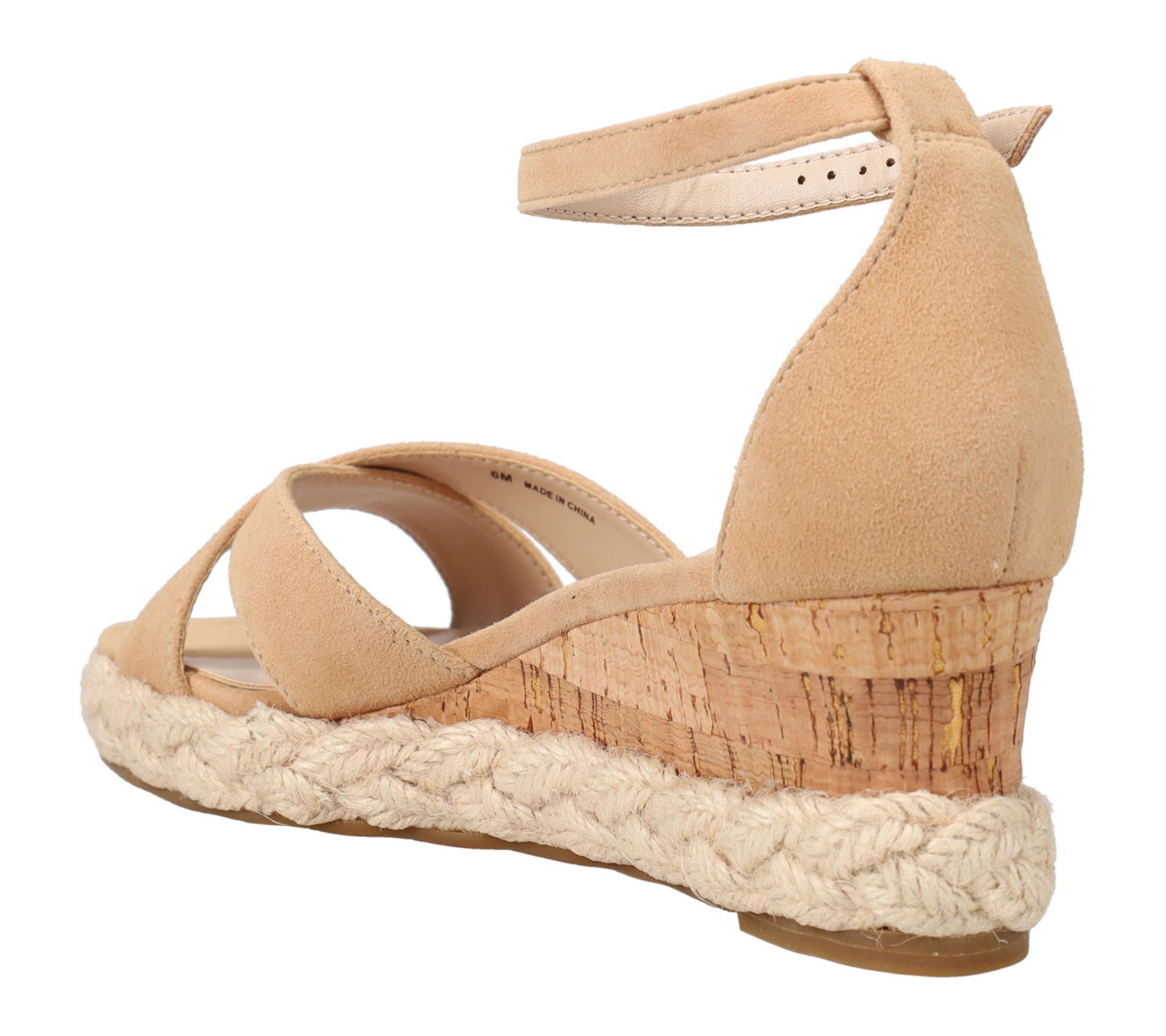 Slip into sunny-day sophistication with these wedge sandals -- whether you're strolling outdoor markets or heading to brunch, their softly structured crisscross suede upper and cushioned footbed ensure comfort meets style. The cork-wrapped wedge and braided espadrille-inspired midsole bring a breezy touch that completes every warm-weather outfit with effortless charm. From Pelle Moda.