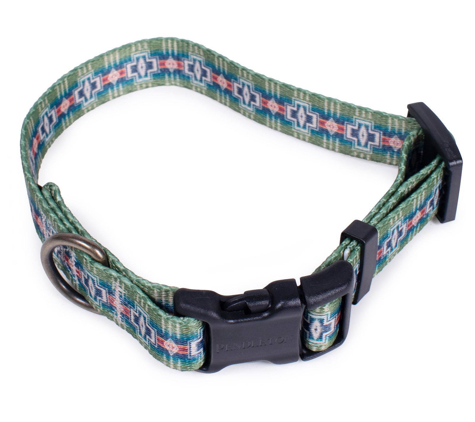 Give your furry friend the ultimate adventure accessory with the Pendleton Classics Adventure dog collar. Perfect for park outings, woodland hikes, or lake jumps, this adjustable collar features polyester webbing in iconic Pendleton patterns and custom-embossed quick-release buckles. From Pendleton.