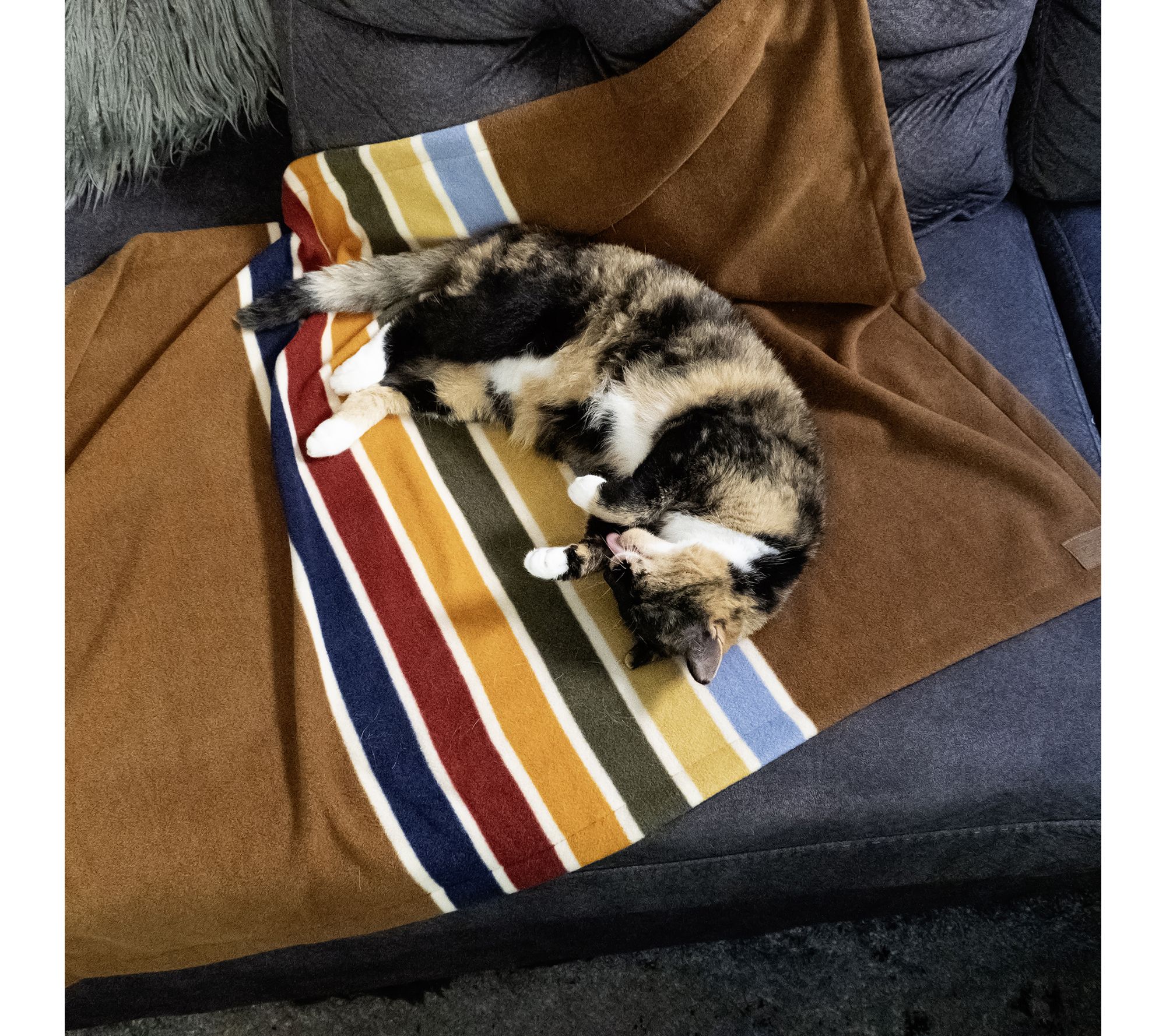 Give your furry companion a cozy retreat with this Pendleton crate blanket, inspired by the iconic patterns of Joshua Tree National Park. Whether draped over their bed, lining a crate, or spread out on the couch, the ultra-soft polar fleece offers warmth and comfort wherever your pet loves to relax. From Pendleton.
