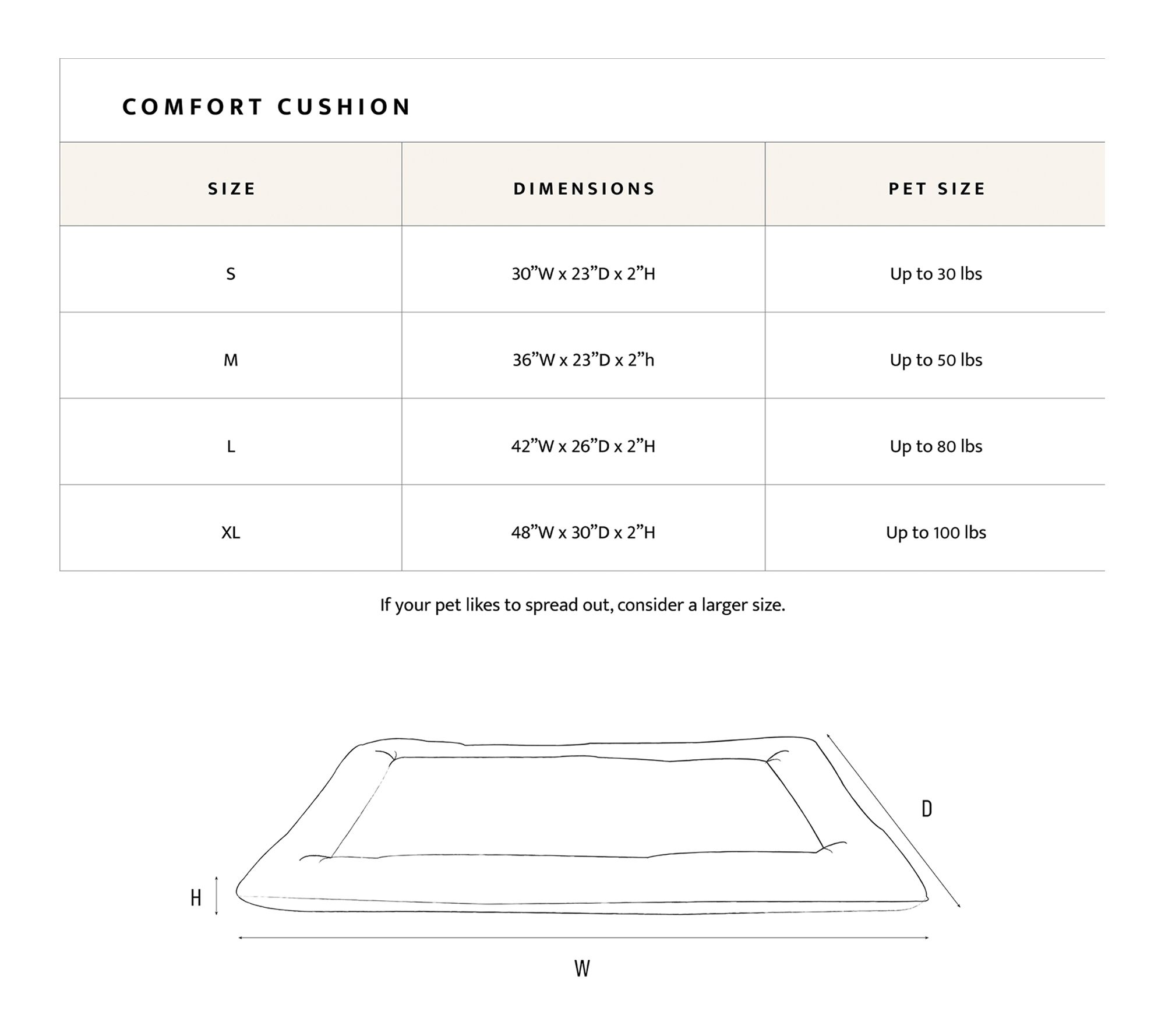 • Measures approximately 42"W x 26"D x 2"H
