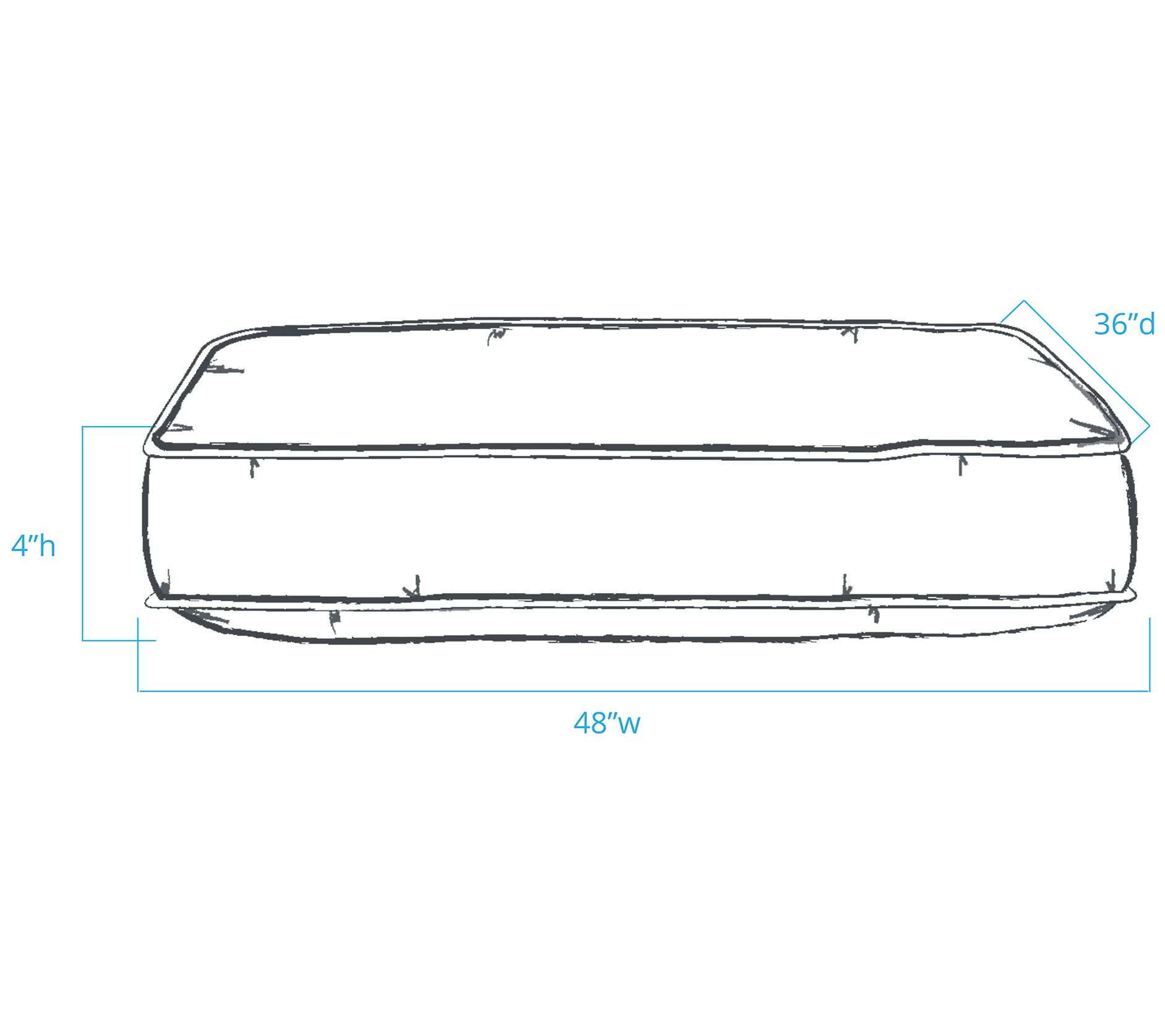 • Measures approximately 40"W x 32"D x 4"H