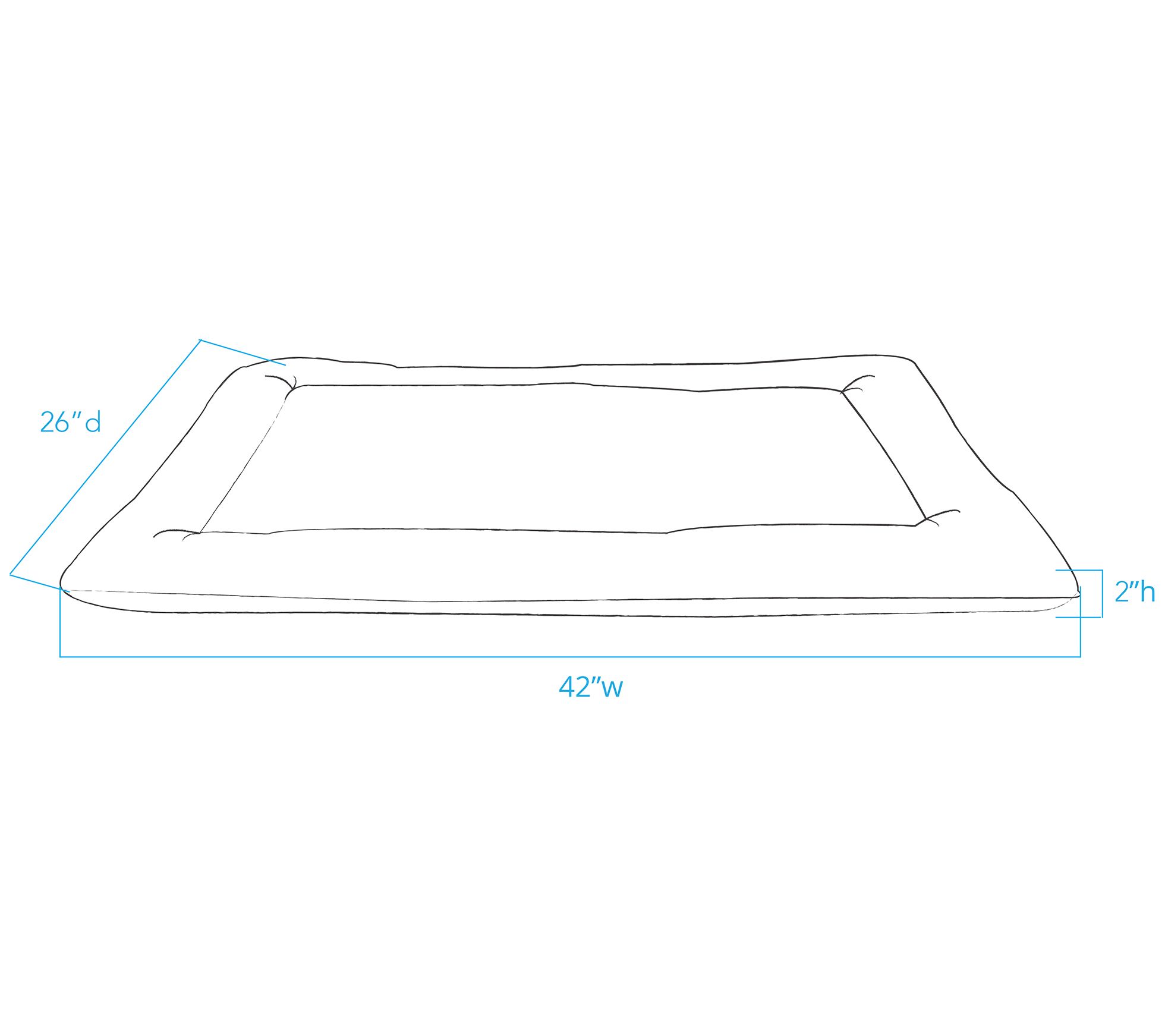 • Measures approximately 42"W x 26"D x 2"H