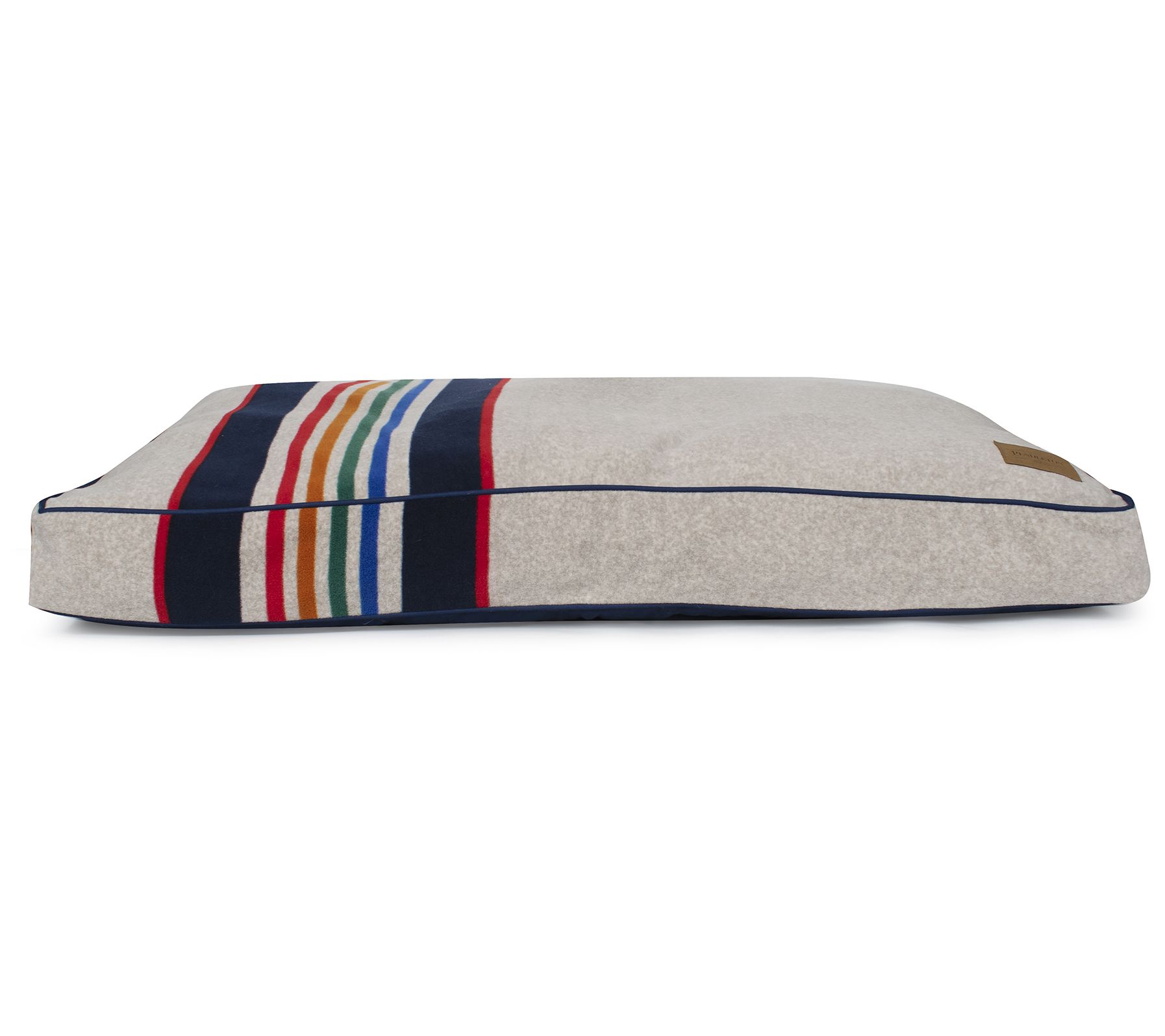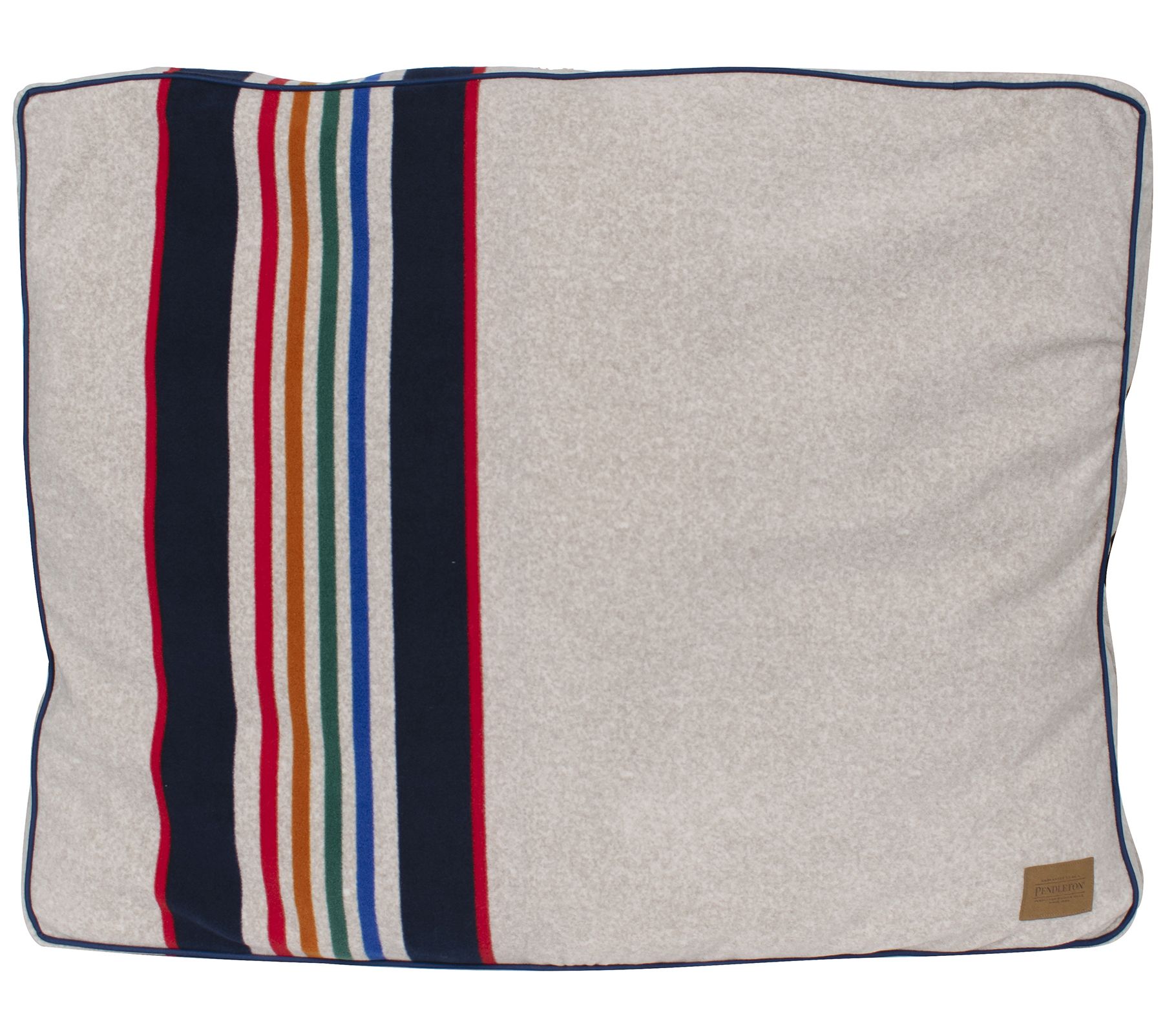 Bring a touch of the great outdoors to your home with the Pendleton large Yellowstone National Park pet napper. Featuring bold colored stripes on a neutral background, this bed is overstuffed with high-loft MemoryFiber polyester fill for comfort and support. From Pendleton.
