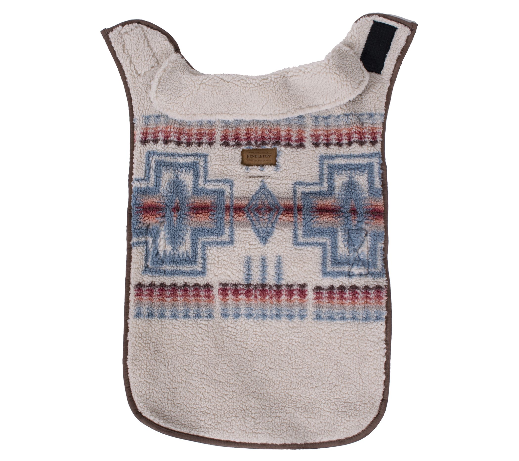 Keep your furry friend cozy and stylish with the Pendleton Harding Rosewood Berber dog coat. Inspired by the iconic Pendleton blanket design, this coat features a beautiful Harding cross icon in rose and blue tones on a natural berber background. The easy on/off hook-and-loop belt and leash cutout make it perfect for those brisk walks. From Pendleton.
