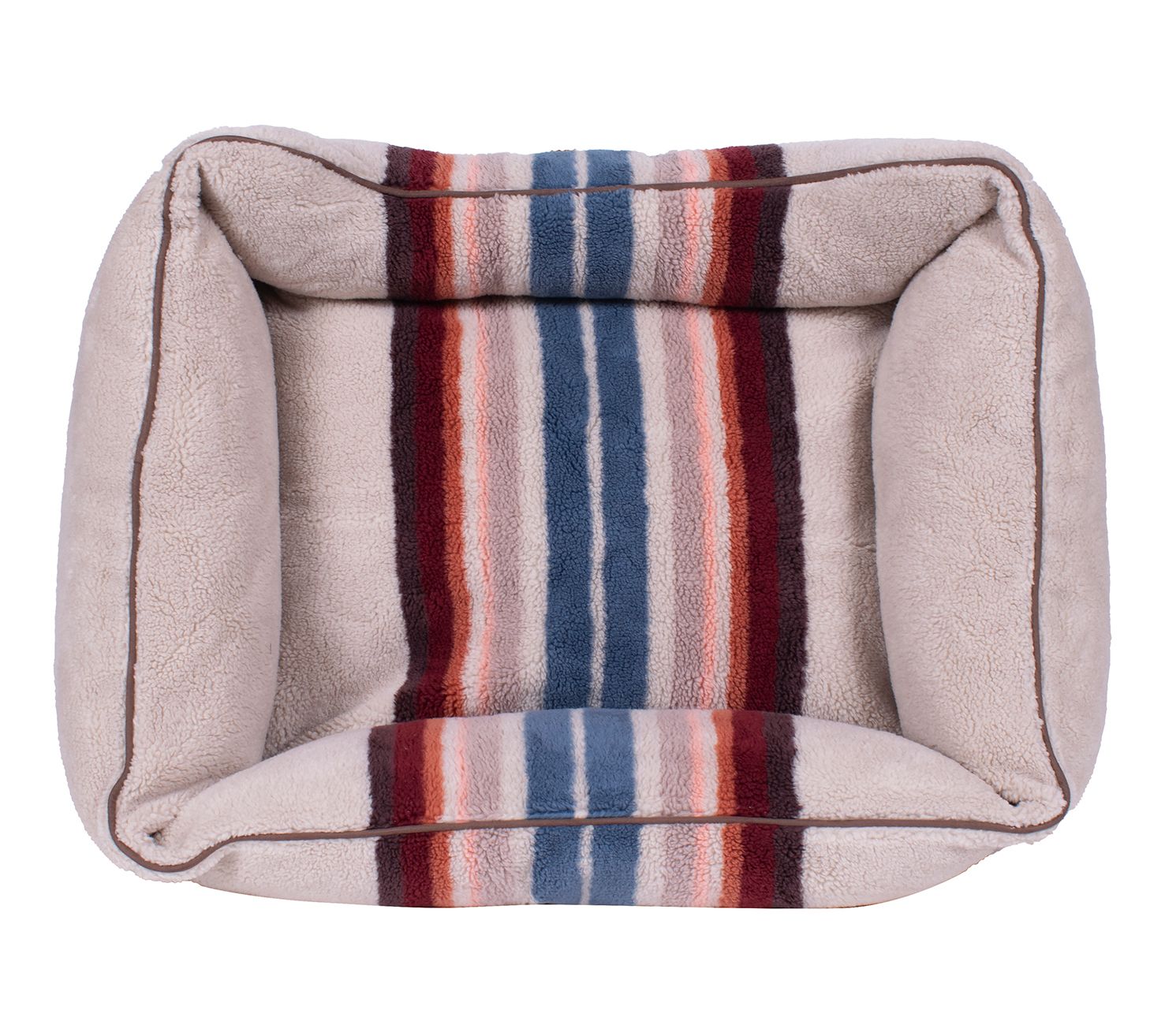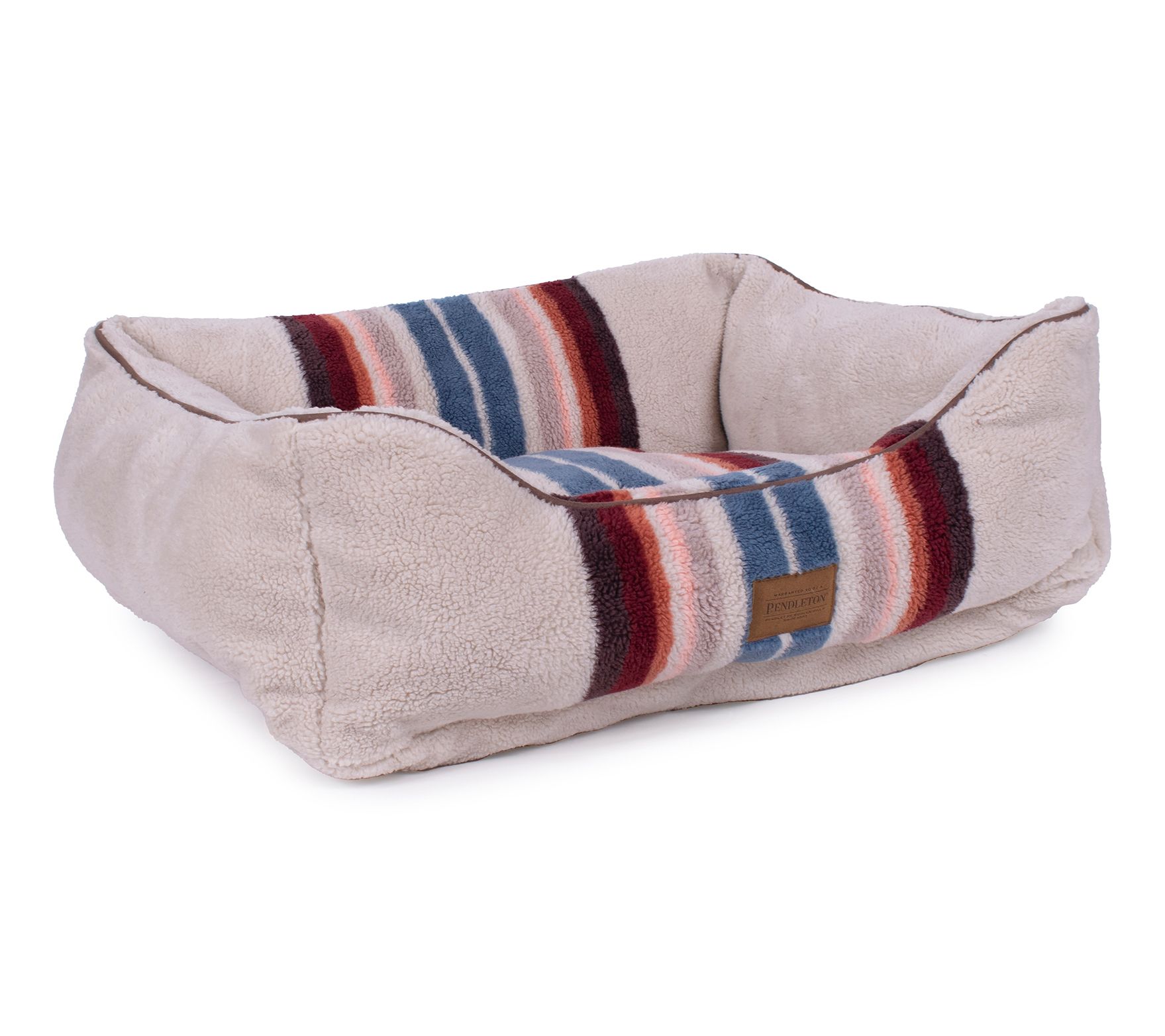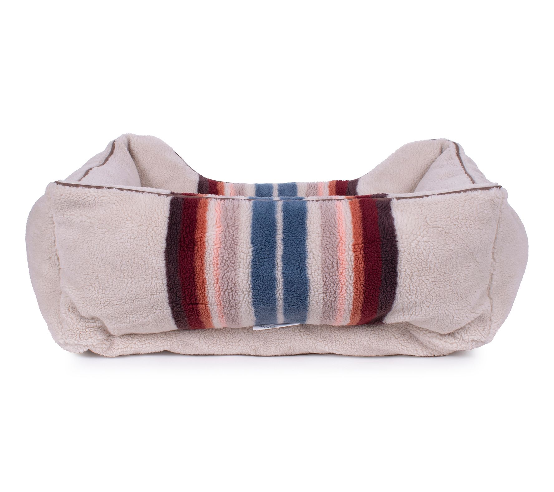 Pendleton's Medium Berber Kuddler offers your furry friend a cozy retreat with vibrant stripes inspired by the celebrated serape patterns of Saltillo, Mexico. The soft jacquard knitted berber fabric and high-loft memory fiber polyester fill ensure comfort and support. From Pendleton.