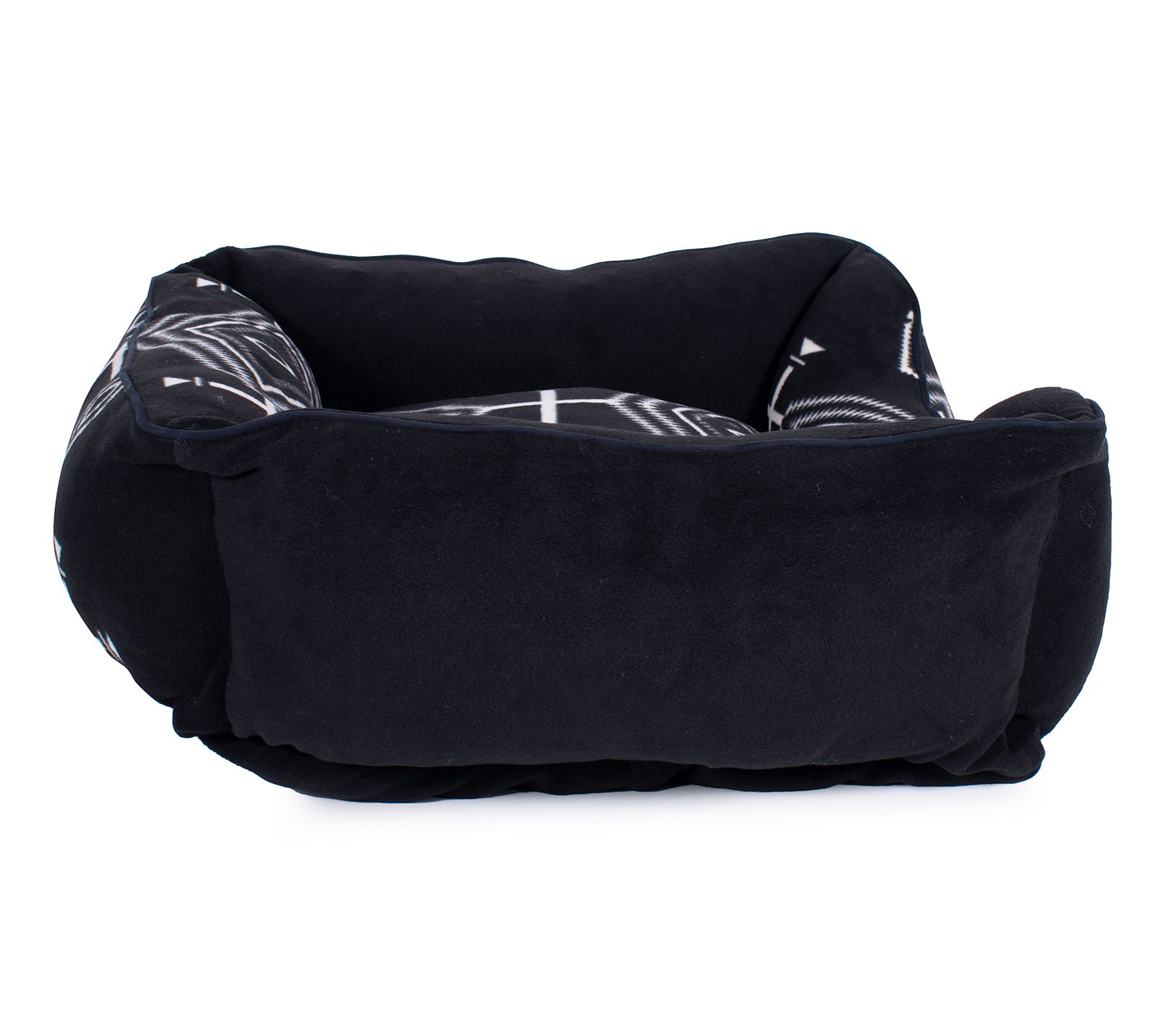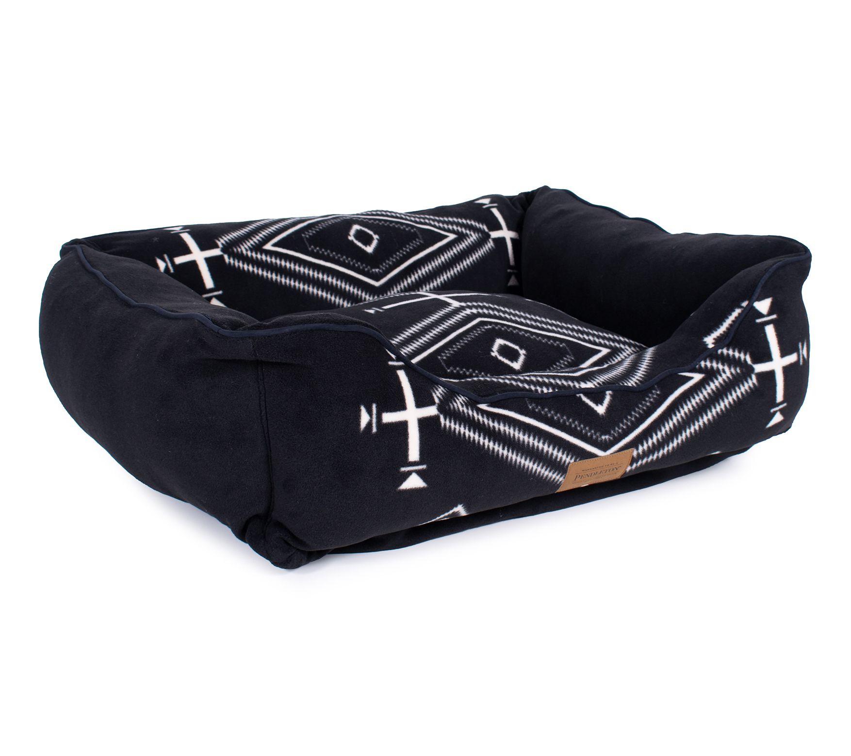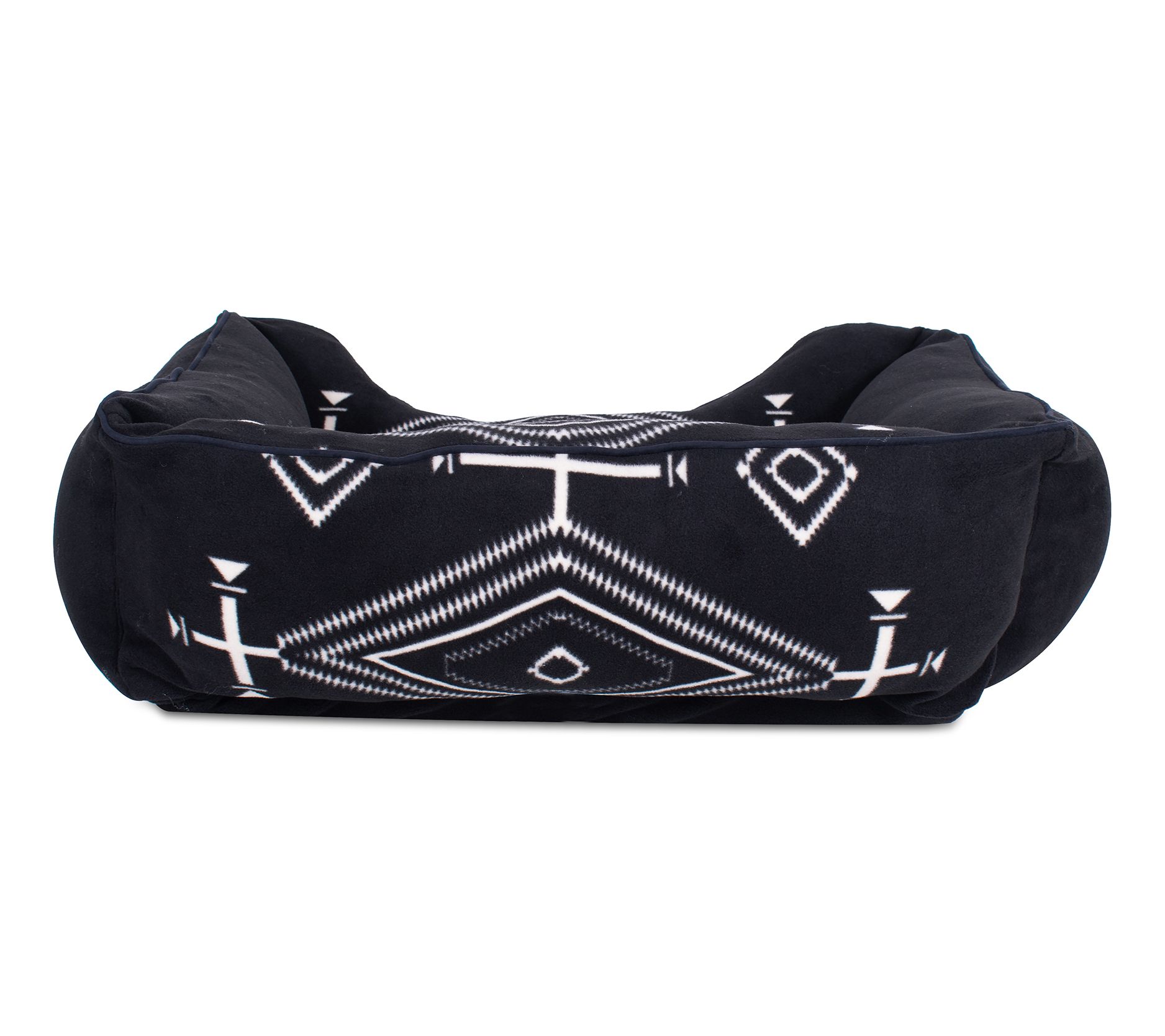 Pendleton's medium fleece kuddler is the perfect blend of style and comfort for your furry friend. Featuring unique Spanish crosses, diamond-shaped eyes, and other symbols, this bed offers a dramatic statement. Overstuffed with high-loft MemoryFiber polyester fill, it ensures maximum support and coziness. From Pendleton.