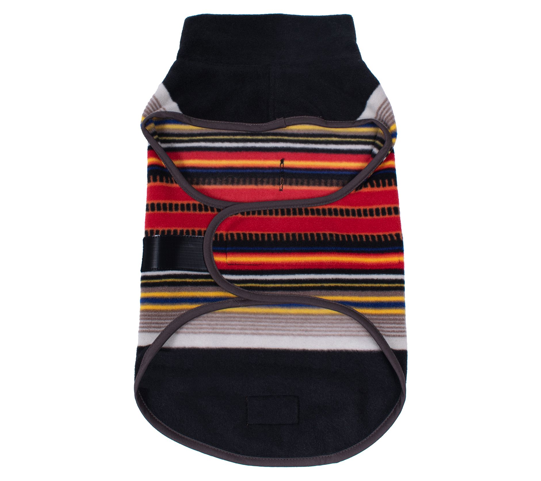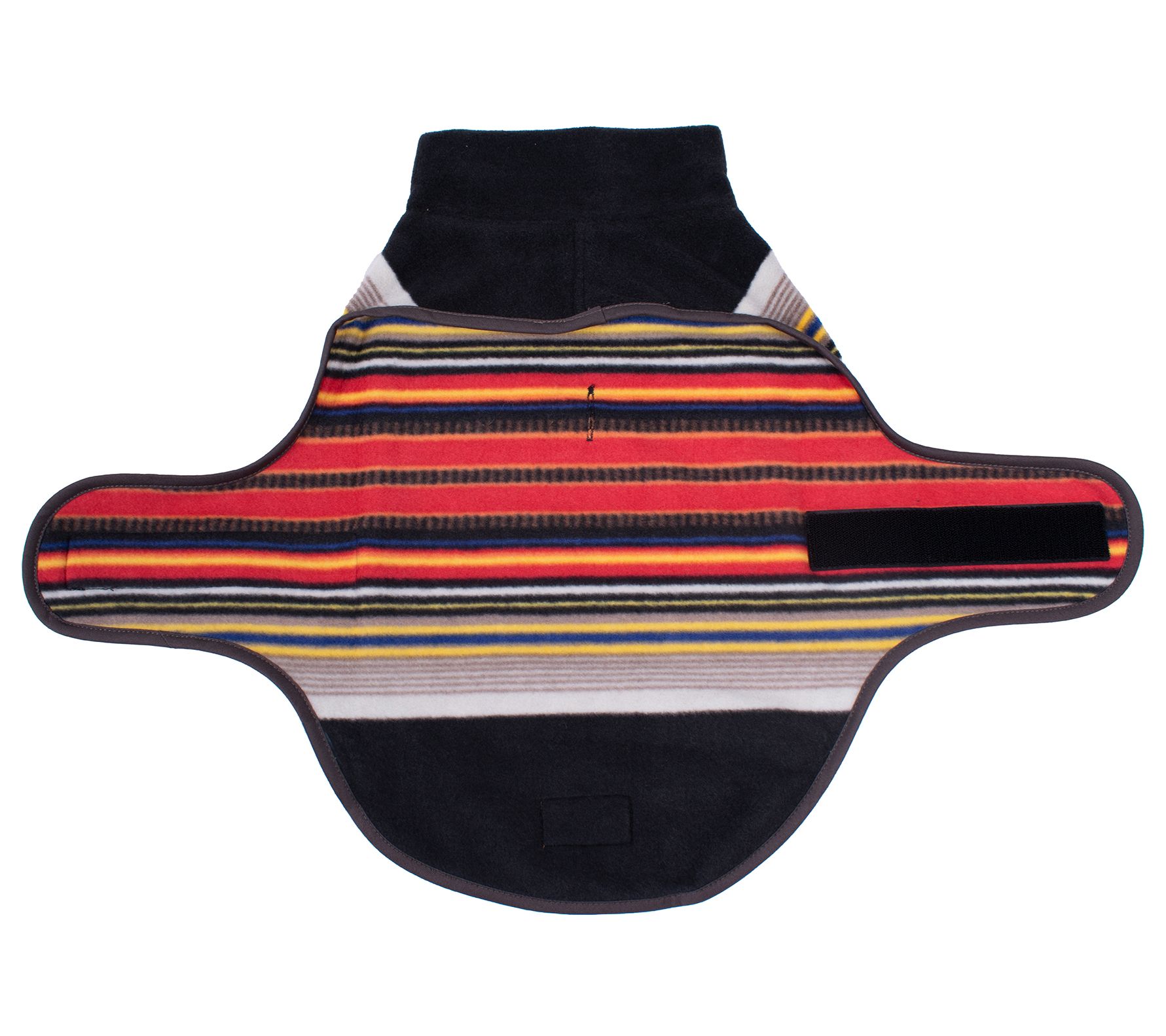 • Features bold colored stripes on a polar fleece background