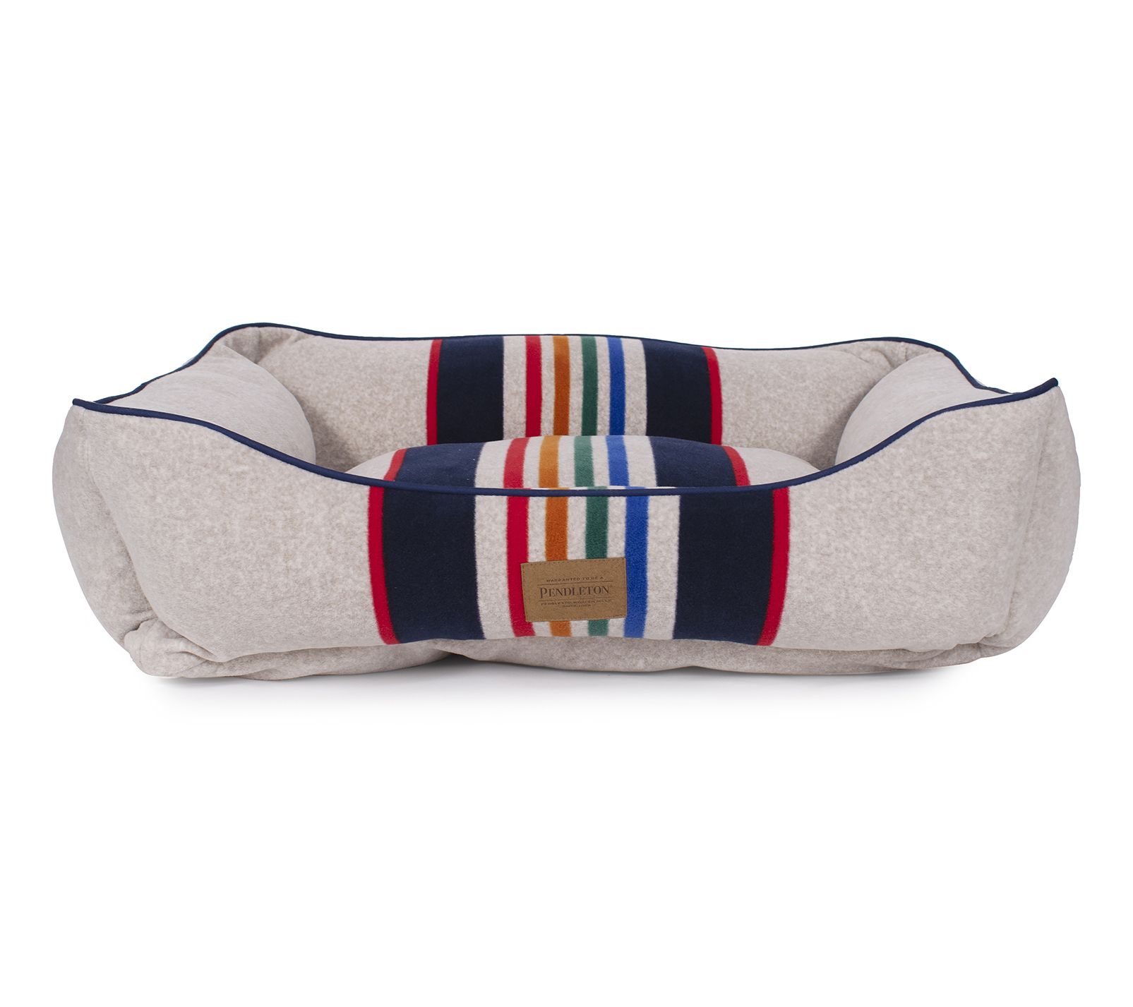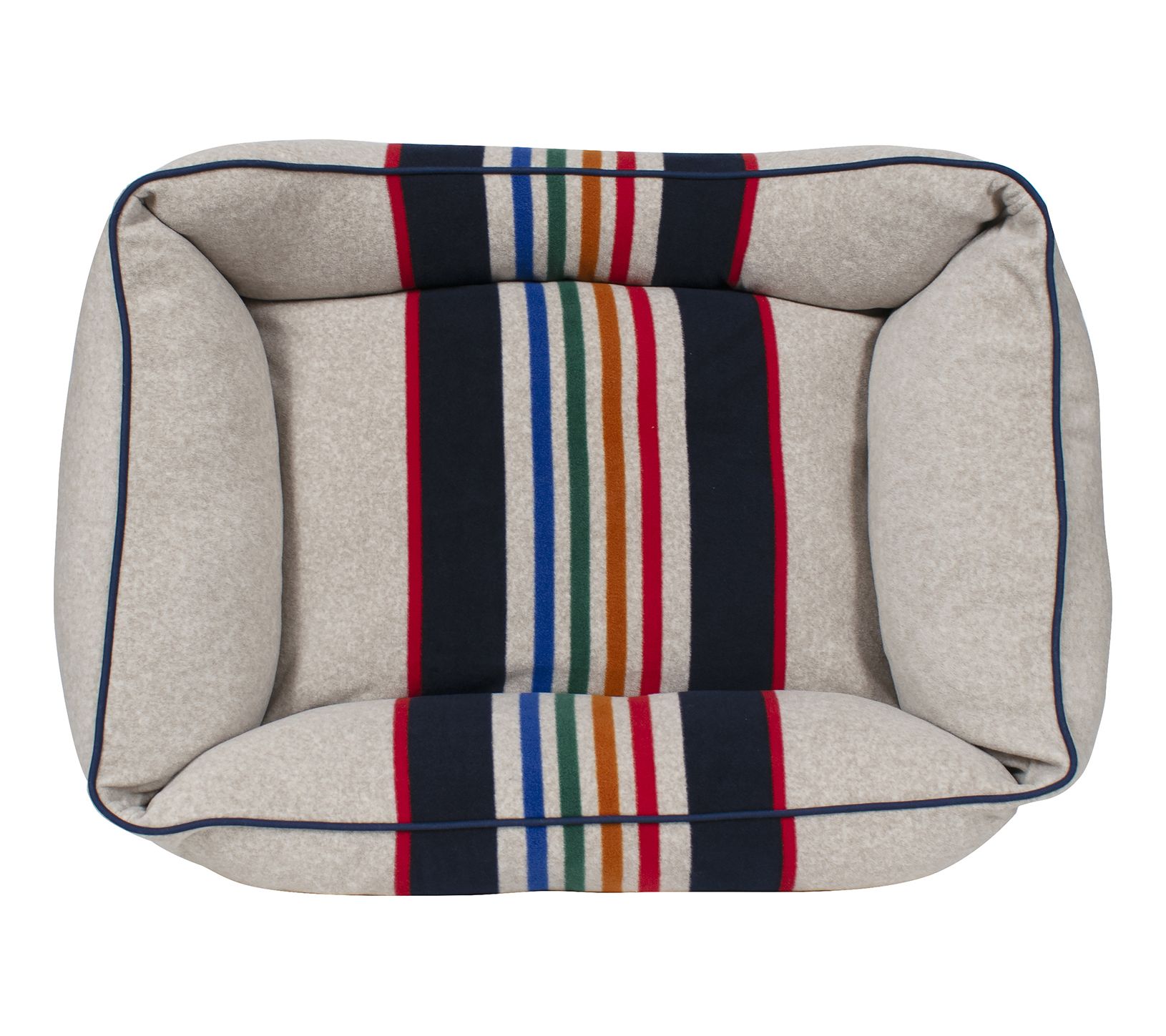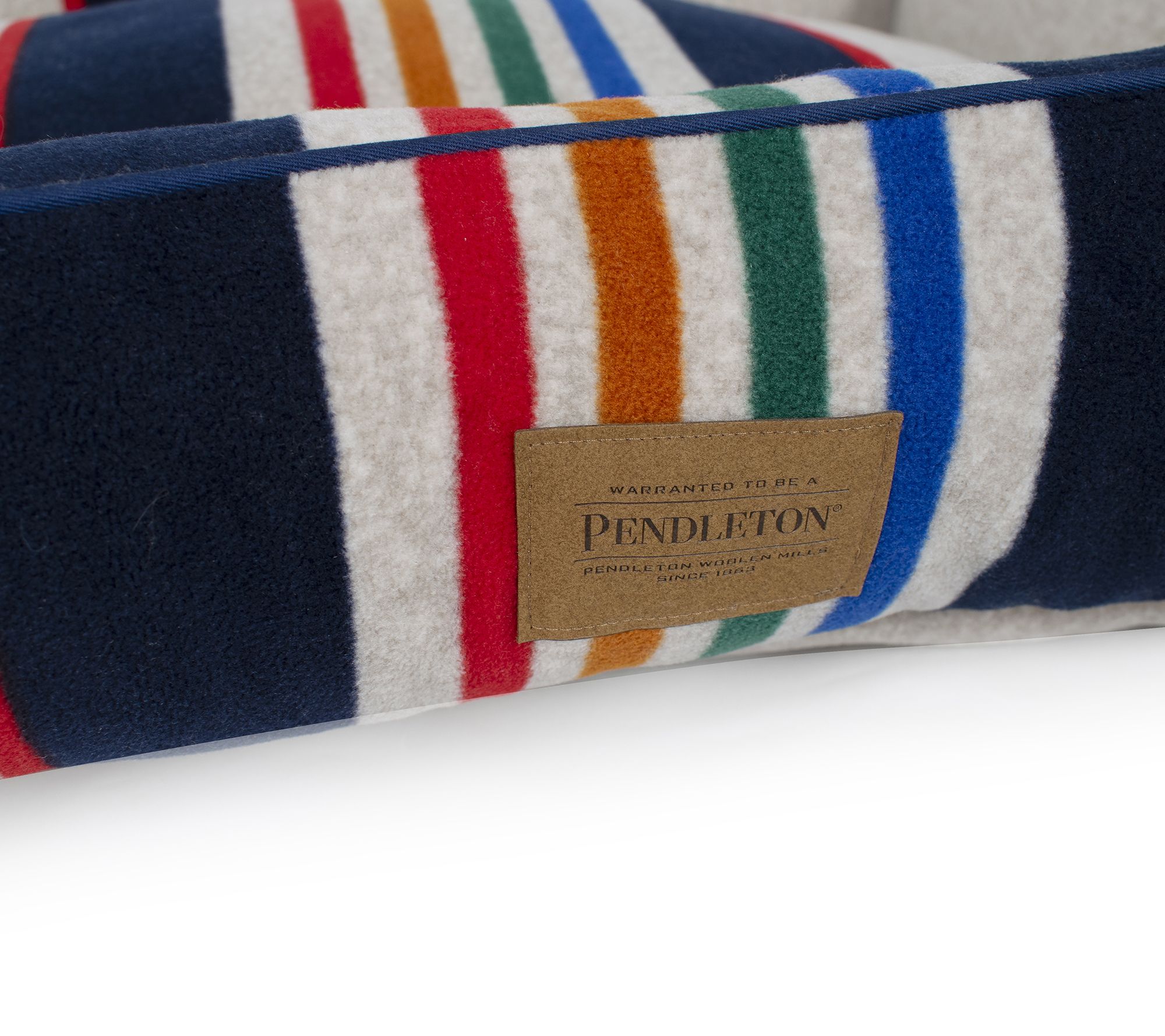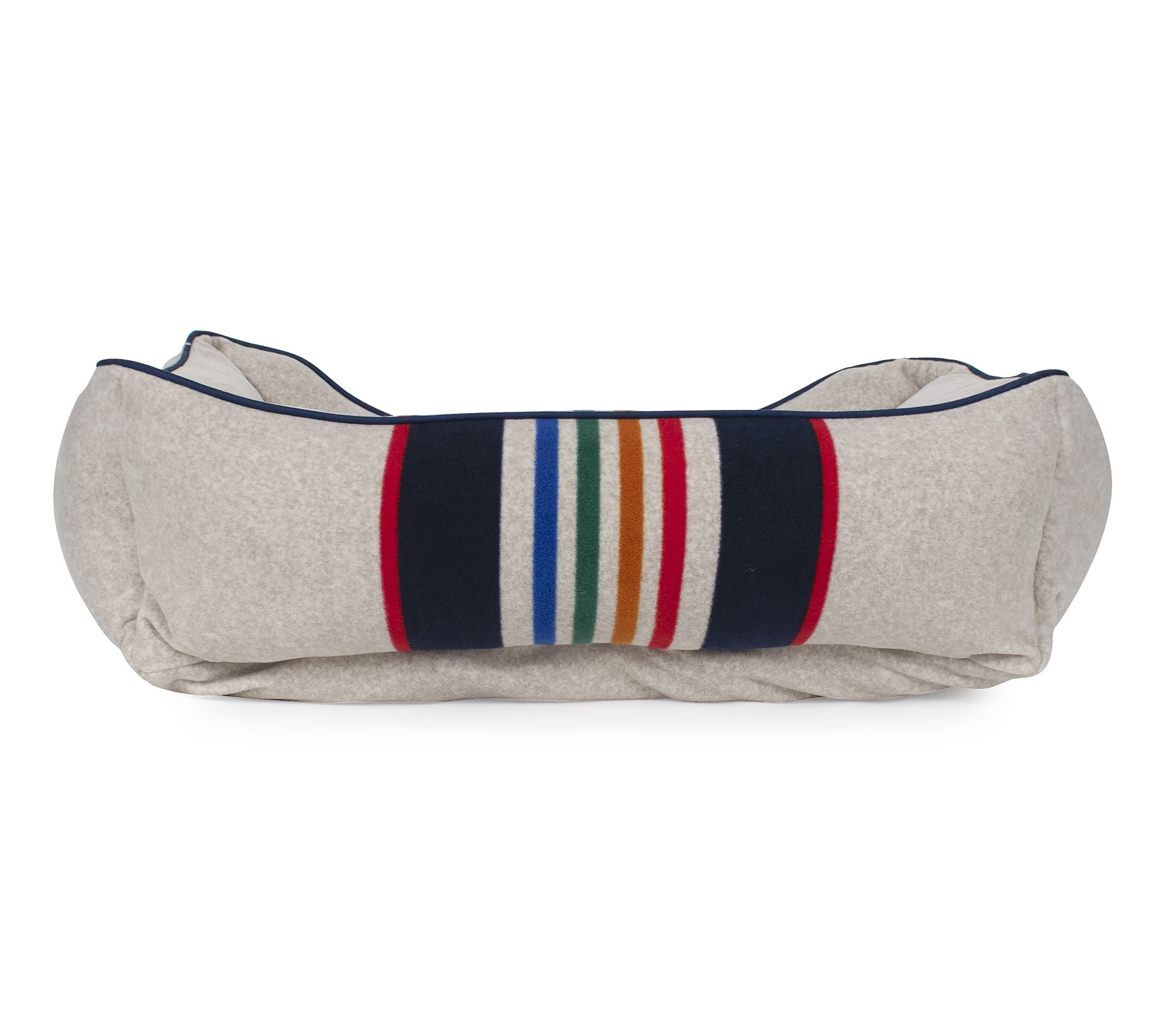 Bring the beauty of Yellowstone National Park to your home with the Pendleton kuddler pet bed. Featuring bold colored stripes on a neutral background, the pet bed is overstuffed with high-loft MemoryFiber polyester fill for maximum support and comfort. From Pendleton.