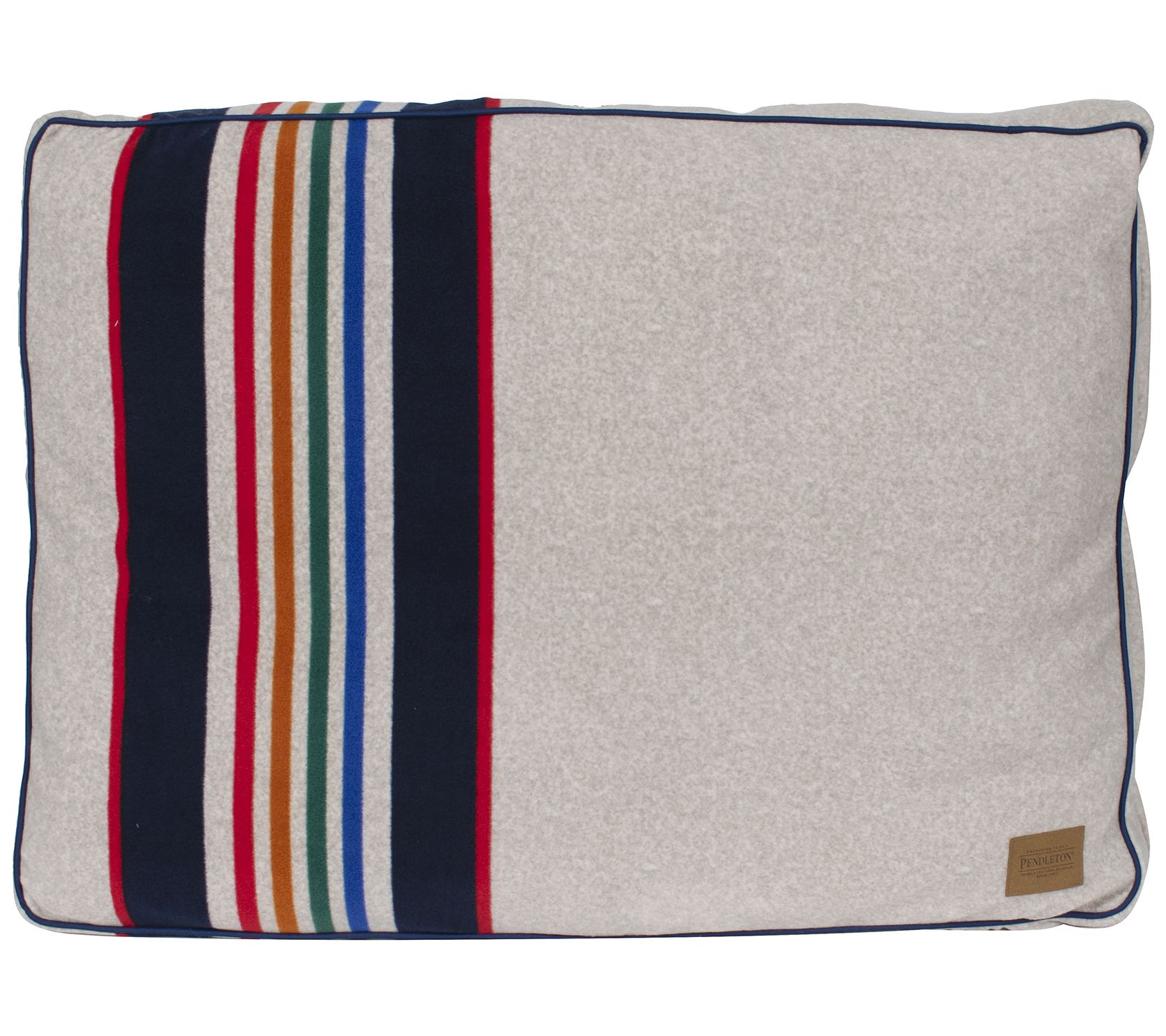 Bring a touch of the great outdoors to your home with the Pendleton medium Yellowstone National Park pet napper. Featuring bold colored stripes on a neutral background, this bed is overstuffed with high-loft MemoryFiber polyester fill for comfort and support. From Pendleton.