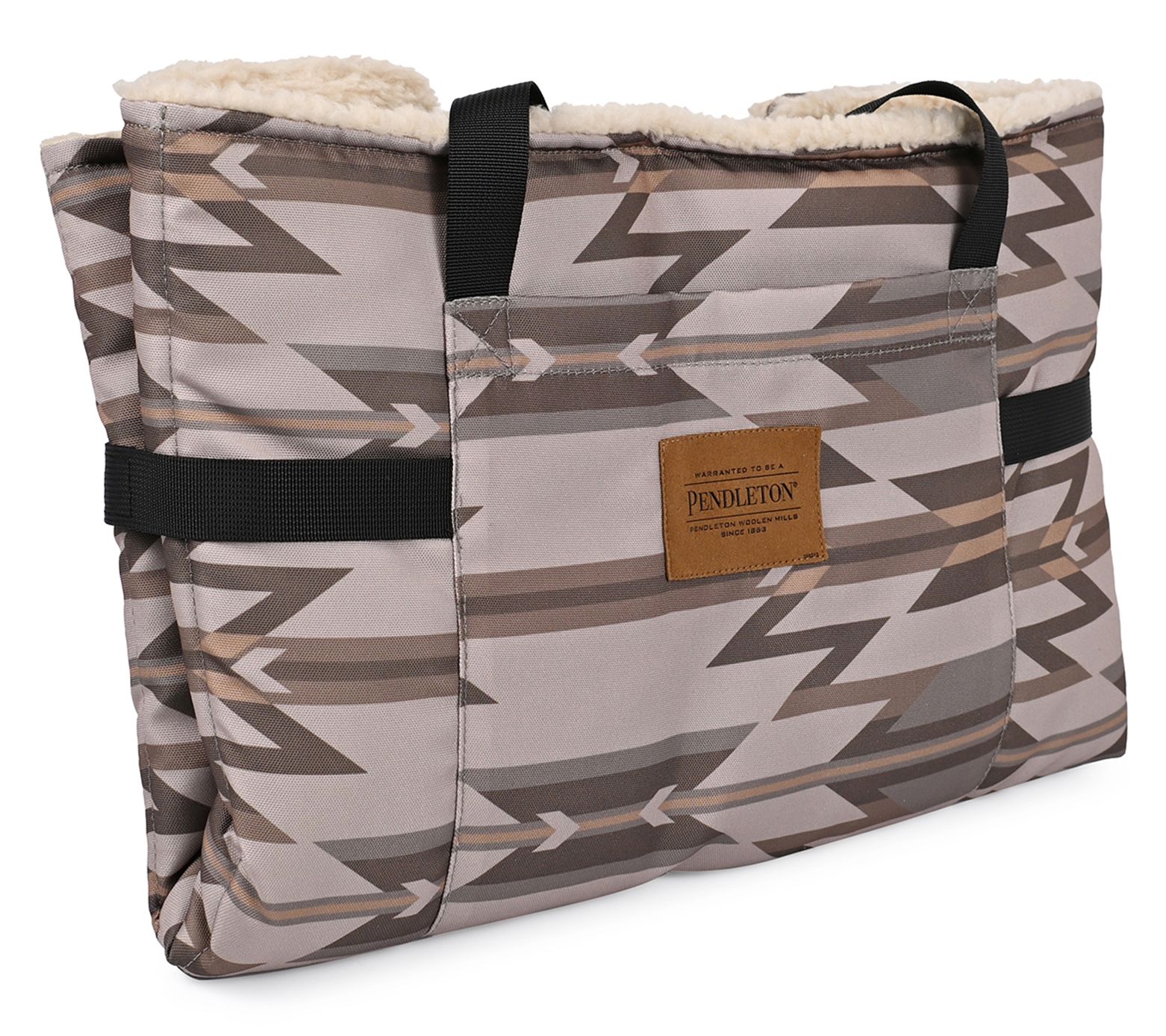 Whether embarking on a road trip or a weekend getaway, make sure your furry friend has the perfect place to rest with the Pendleton travel bed tote. This ingenious bed folds into a handy travel tote, ready to accompany you wherever you go. The water-resistant exterior, adorned with a chic Pendleton pattern, pairs beautifully with the soft, sherpa-lined interior for a cozy retreat. Easy to pack and machine washable, it's ideal for pet owners seeking comfort and convenience. From Pendleton.