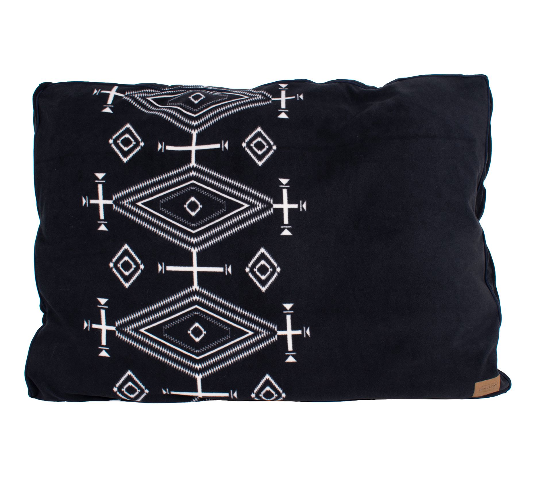 Treat your furry friend to the ultimate comfort with the Pendleton XL fleece pet napper. Featuring Spanish crosses, diamond-shaped eyes, and Navajo Four Mountains of Creation symbols, this pet bed makes a dramatic statement. The high-loft MemoryFiber polyester fill and machine-washable removable cushion cover ensure everyday comfort and easy maintenance. From Pendleton.
