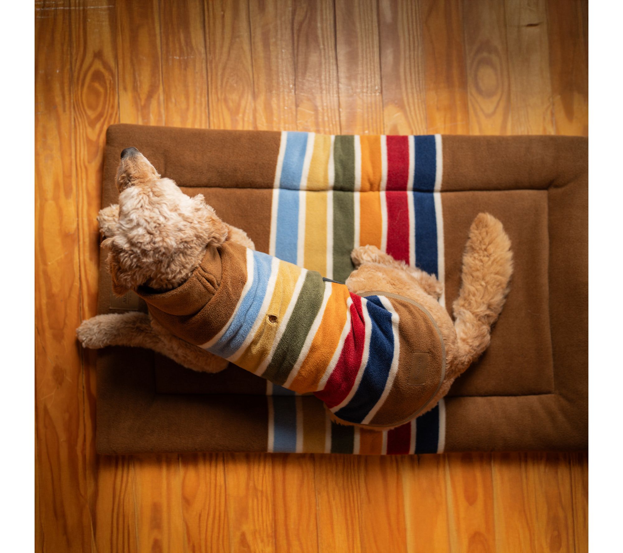 Give your dog a cozy retreat wherever adventure takes you with this extra-large comfort cushion bed. The reversible design offers warmth with plush polar fleece on one side and a cool, quilted cotton canvas on the other, making it ideal for travel, vacations, or everyday lounging at home. From Pendleton.