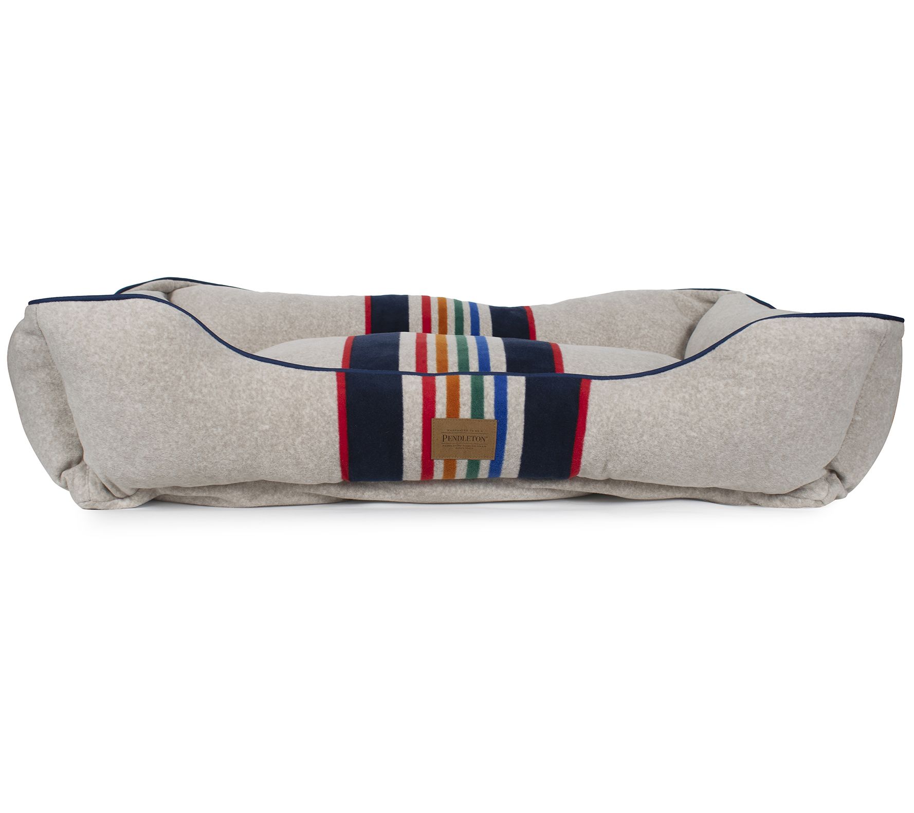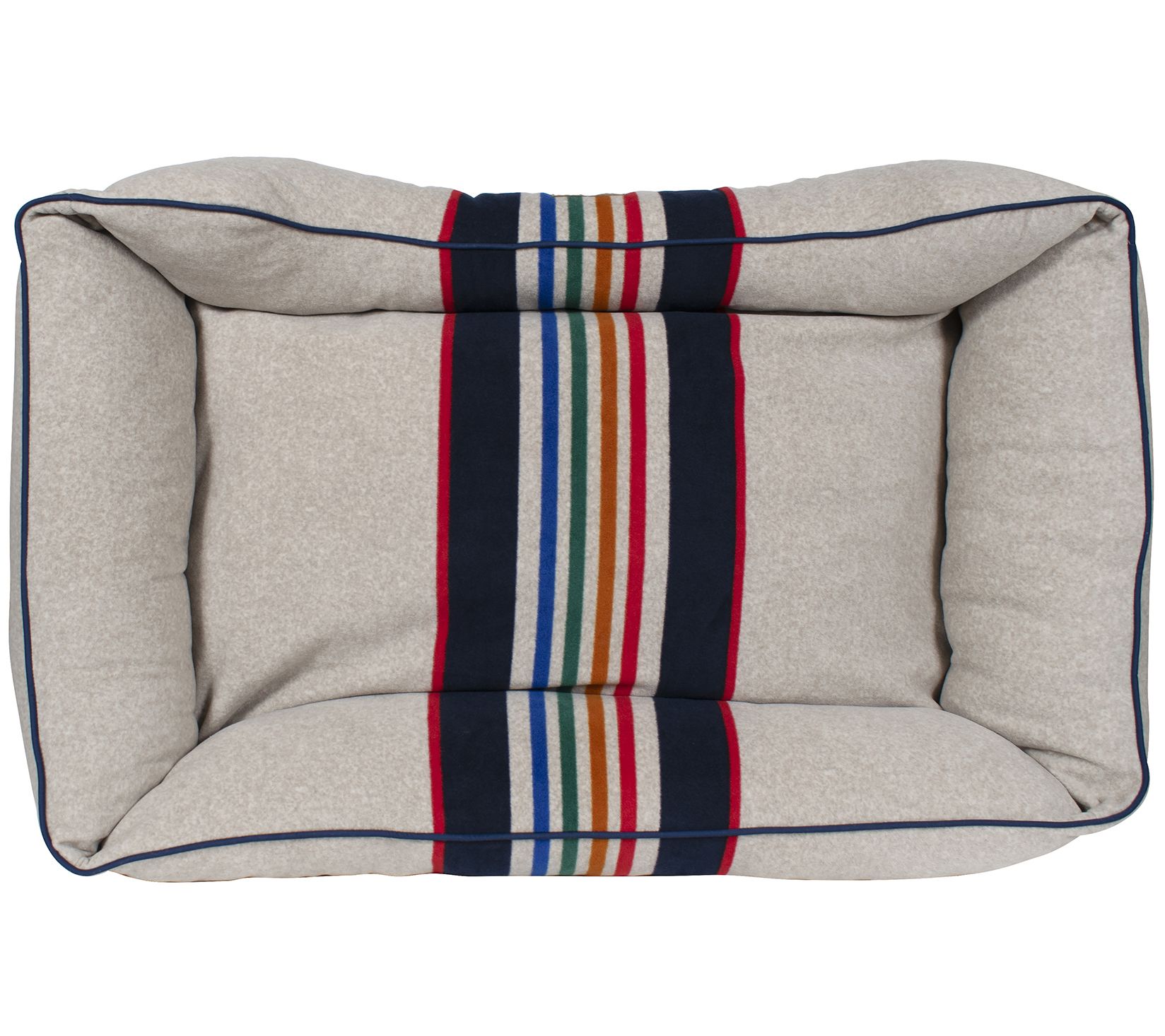 Bring the beauty of Yellowstone National Park to your home with the Pendleton kuddler pet bed. Featuring bold colored stripes on a neutral background, the pet bed is overstuffed with high-loft MemoryFiber polyester fill for maximum support and comfort. From Pendleton.