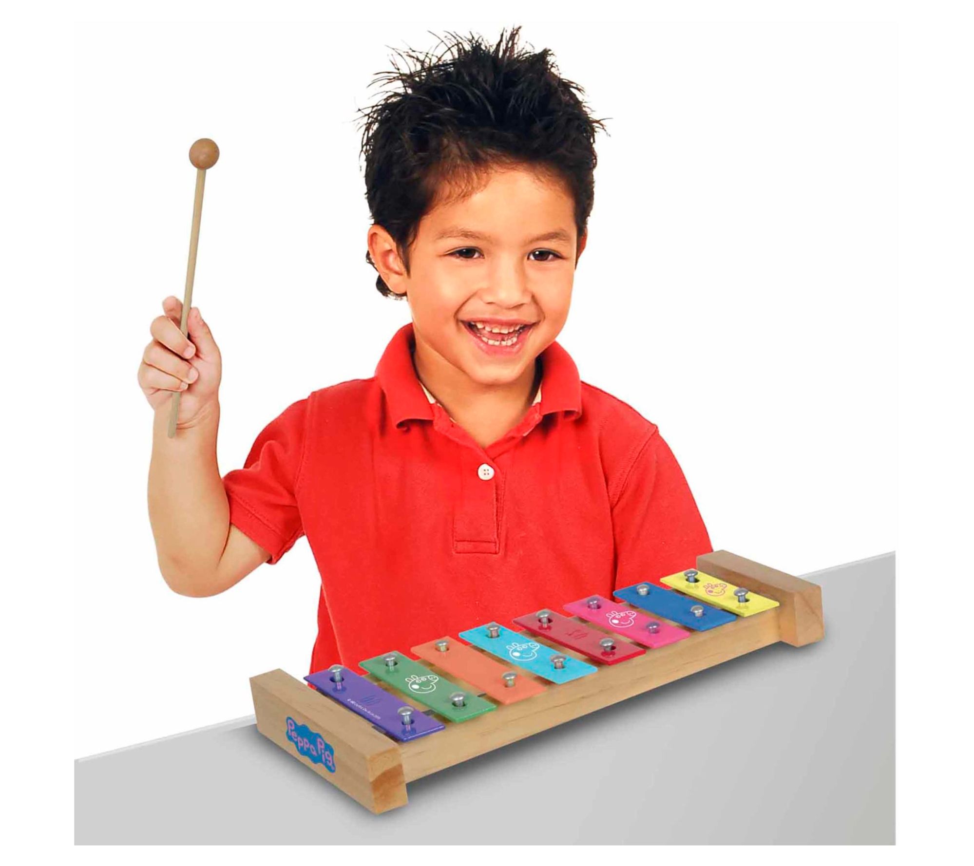 Inspire a love of music in your child with this Peppa Pig Xylophone and Maracas Combo Set. With vibrant multi-colored keys featuring Peppa Pig graphics, this xylophone produces clear, melodic sounds that will delight your young musician. Shake the wooden maracas to the beat and help your child learn rhythm. From Peppa Pig.