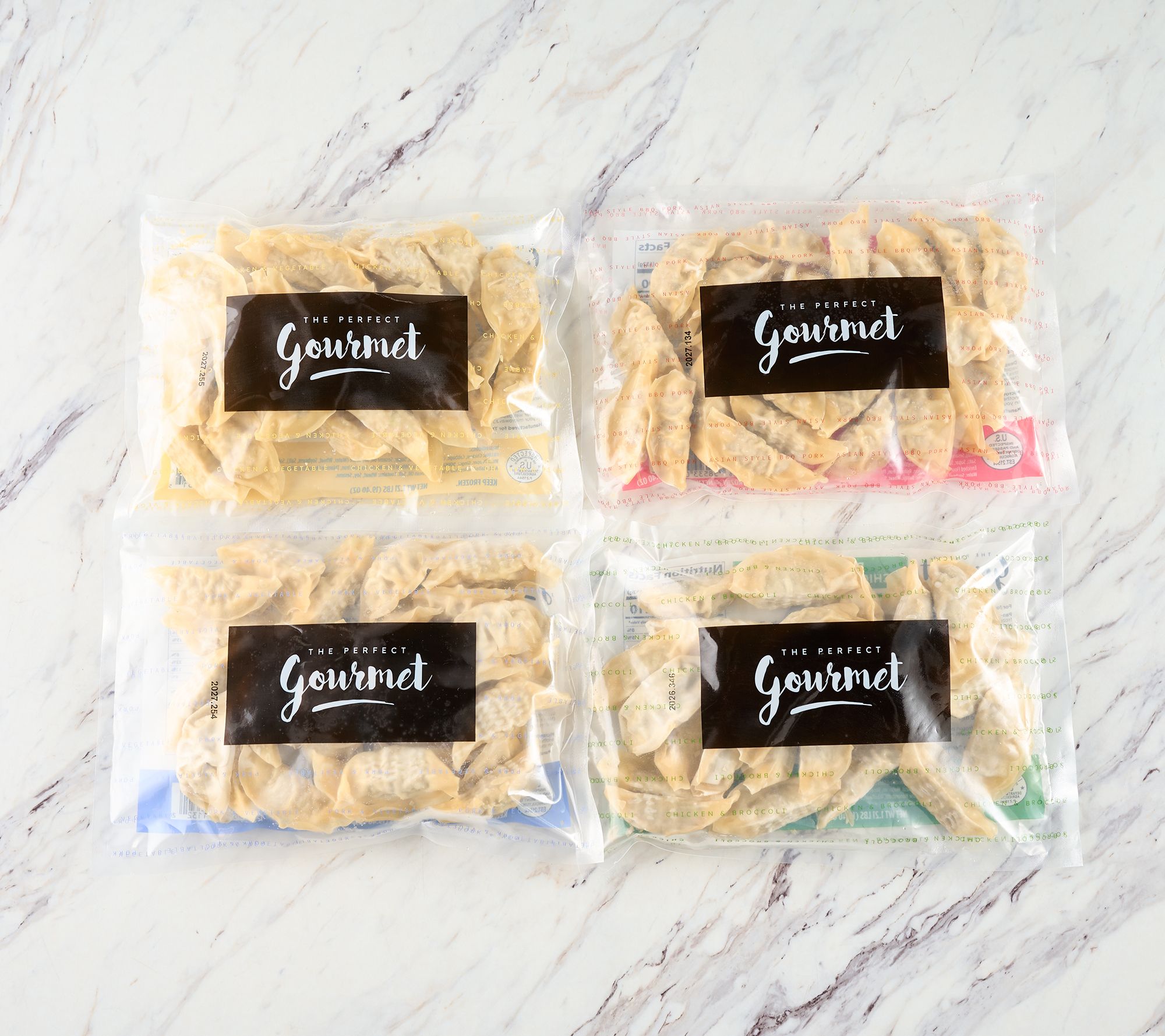 The crispy, thin wonton shells are generously stuffed with a savory filling of meat and veggies, making them positively irresistible. Choose from traditional flavors you already love or rev up your taste buds with something new. Fast and easy to make? Of course! Delicious? You bet! Enough to feed you and your hungry crew? Yup -- you're welcome! From The Perfect Gourmet.