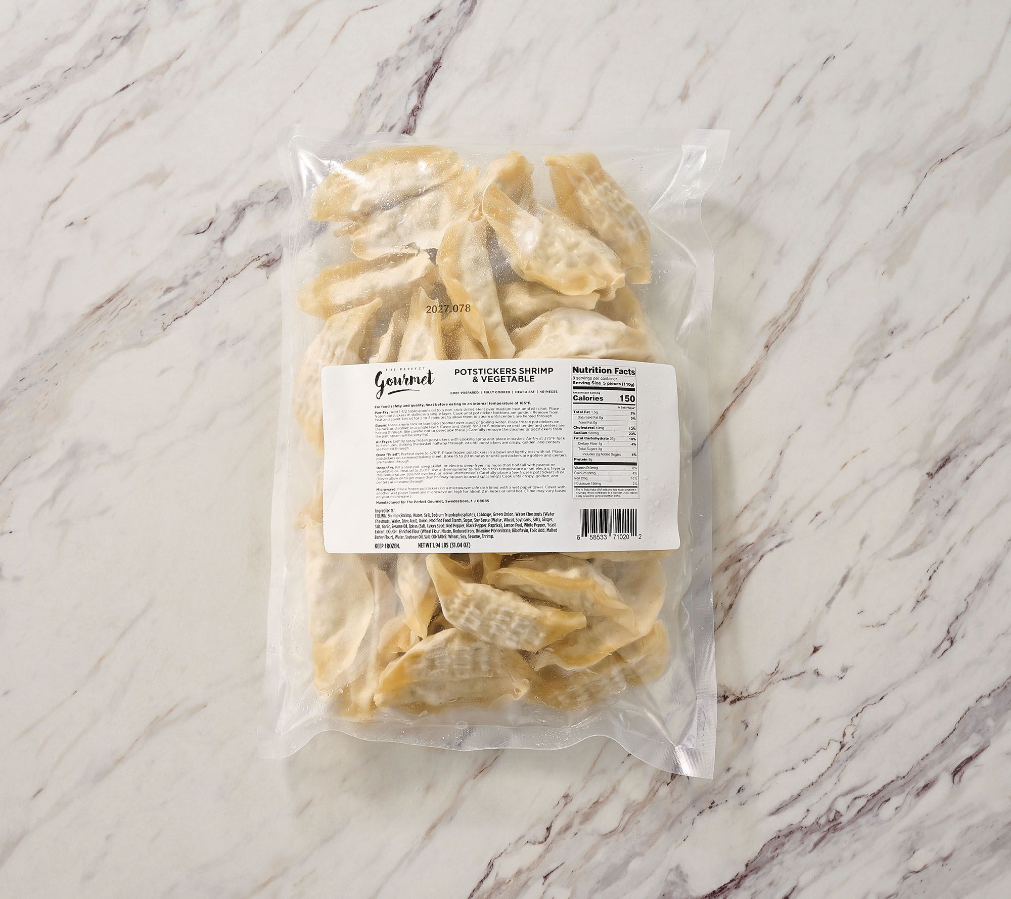 Includes 80 0.778-oz shrimp potstickers