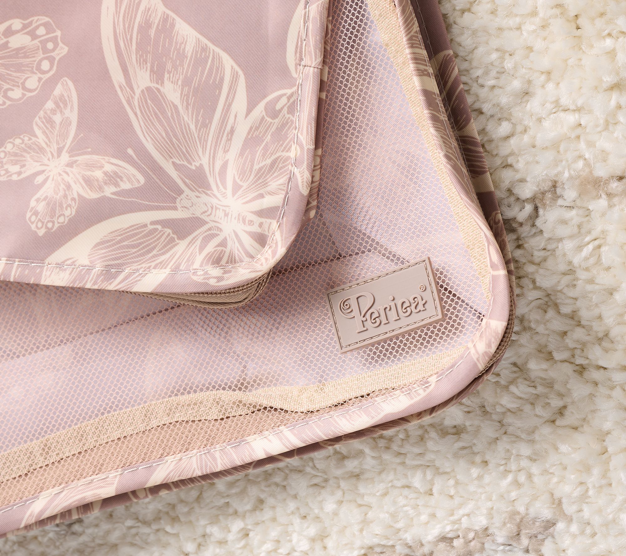 Traveling is easier when your clothes and essentials are neatly organized, and these compression bags make packing a breeze. The set includes large and medium travel bags that collapse to help save space in your suitcase, with mesh front panels for quick visibility and handy top handles for easy carrying. From Periea.