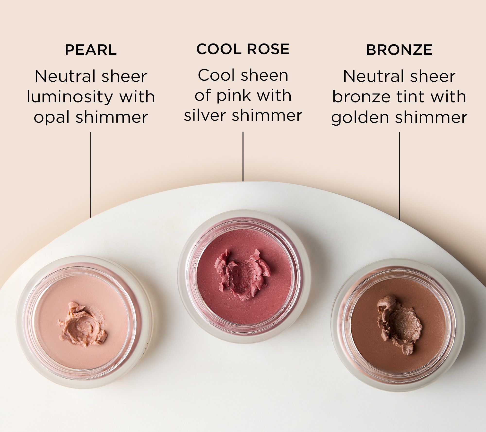 How do I use it: Break the surface of the No Makeup Radiant Glow Balm with your finger and apply anywhere you want to tint or glow. Tips: Apply Pearl to cheekbones, forehead, nose, and chin for the appearance of a neutral-looking sheer luminosity highlight. To enhance and sculpt cheeks with a soft pop of color, apply Cool Rose to cheeks. Apply Bronze to cheekbones, forehead, nose, and chin for the appearance of a natural-looking sheer bronze tint with golden shimmer.