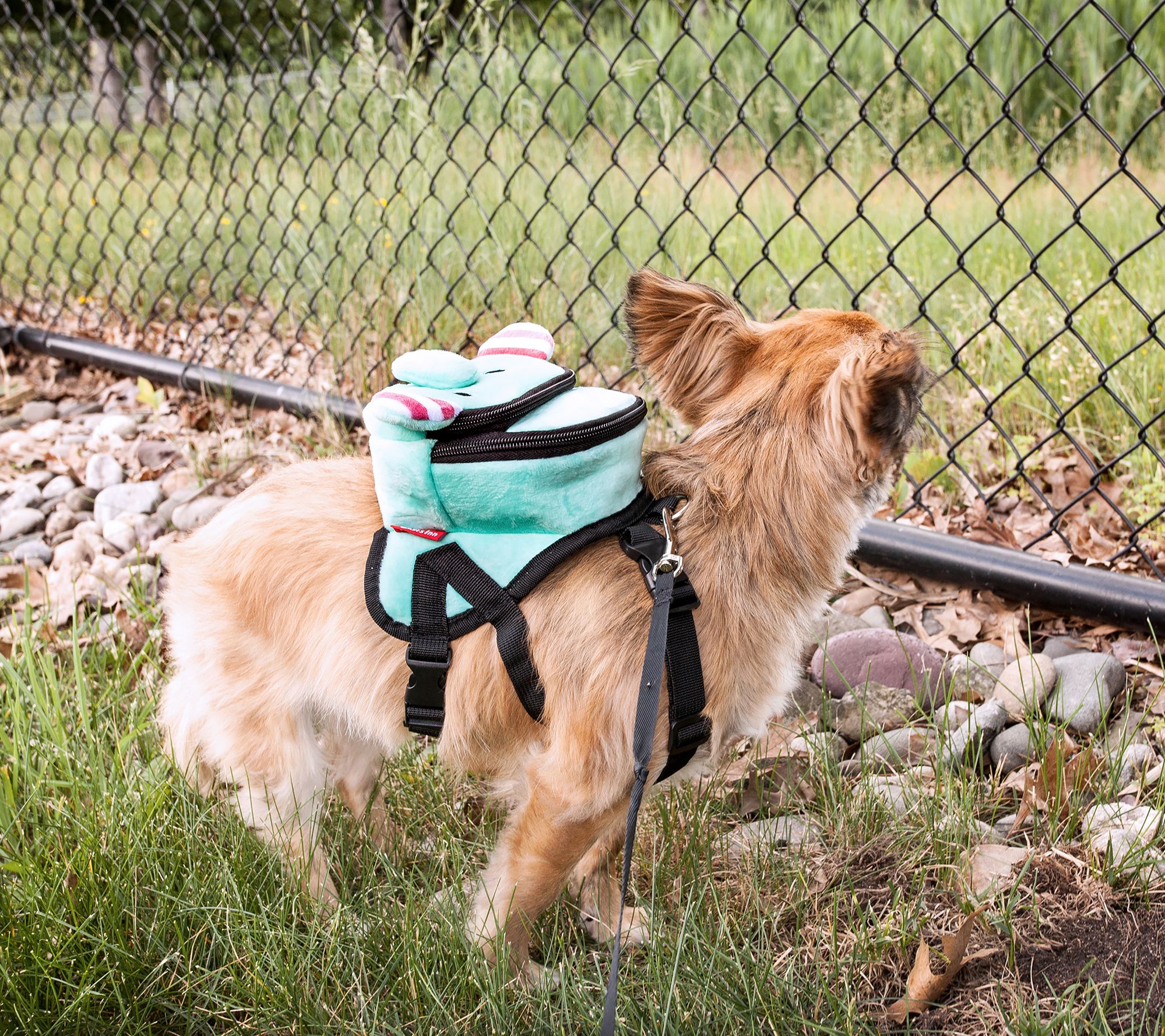 Let your furry friend carry around everything from treats to potty bags with this adorable dog harness backpack. From Pet Life.