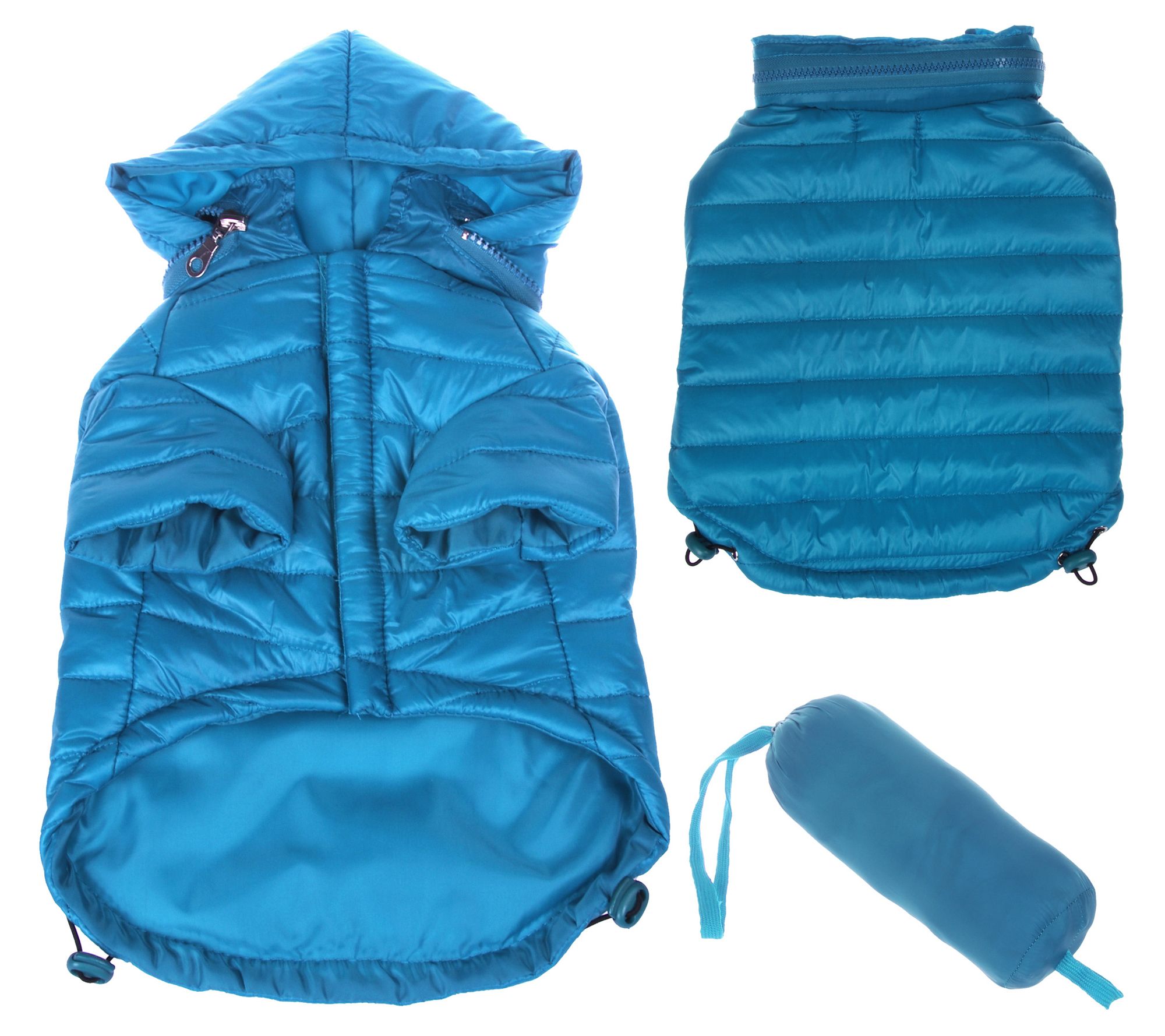 Cozy, athletic style for your furry friend, this Sporty Avalanche pet coat features a pop-out hood that's perfect for rainy day walks. From Pet Life.